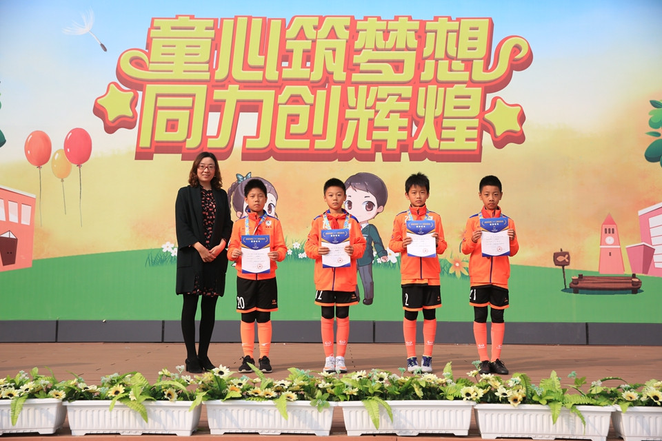 接下来进行了颁奖仪式,本周颁奖对象主要是校啦啦操队和校足球队。他们再次为我校赢得了荣誉,感谢他们的付出和努力!