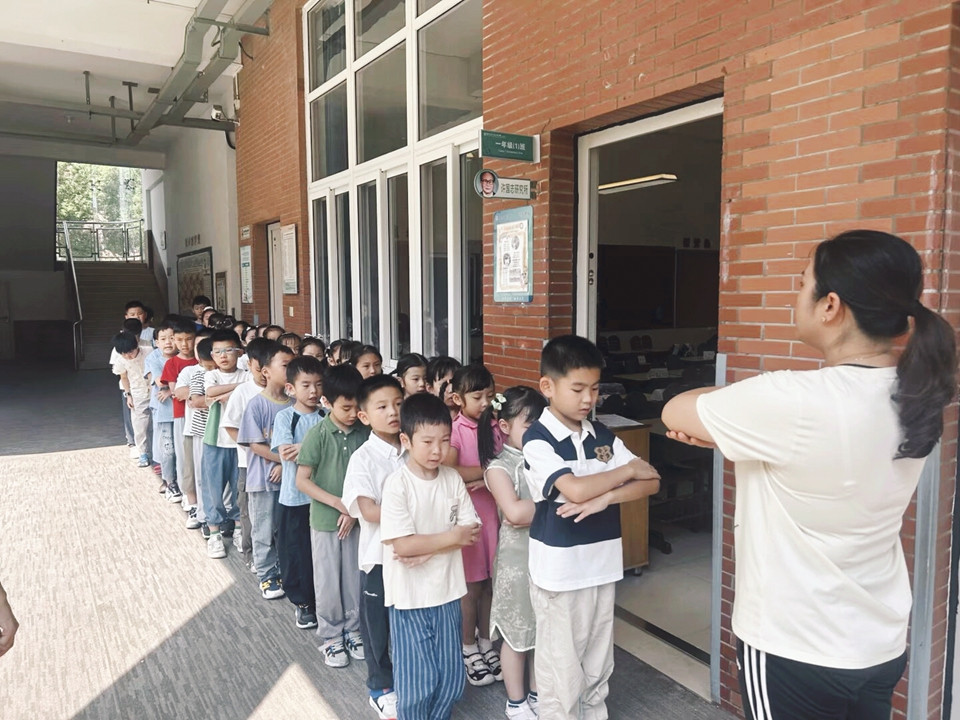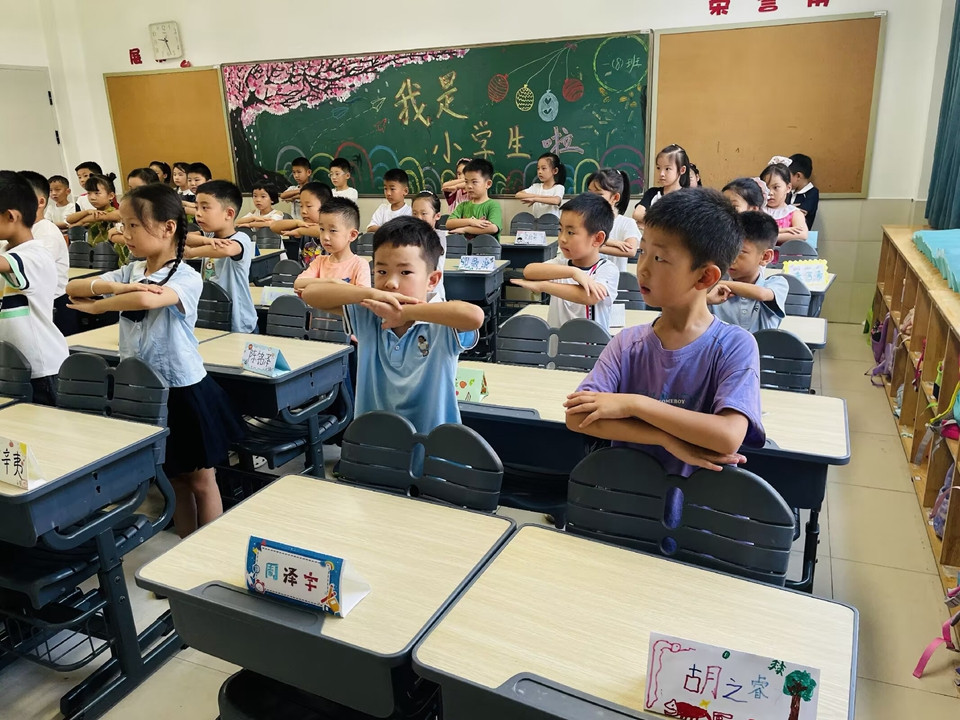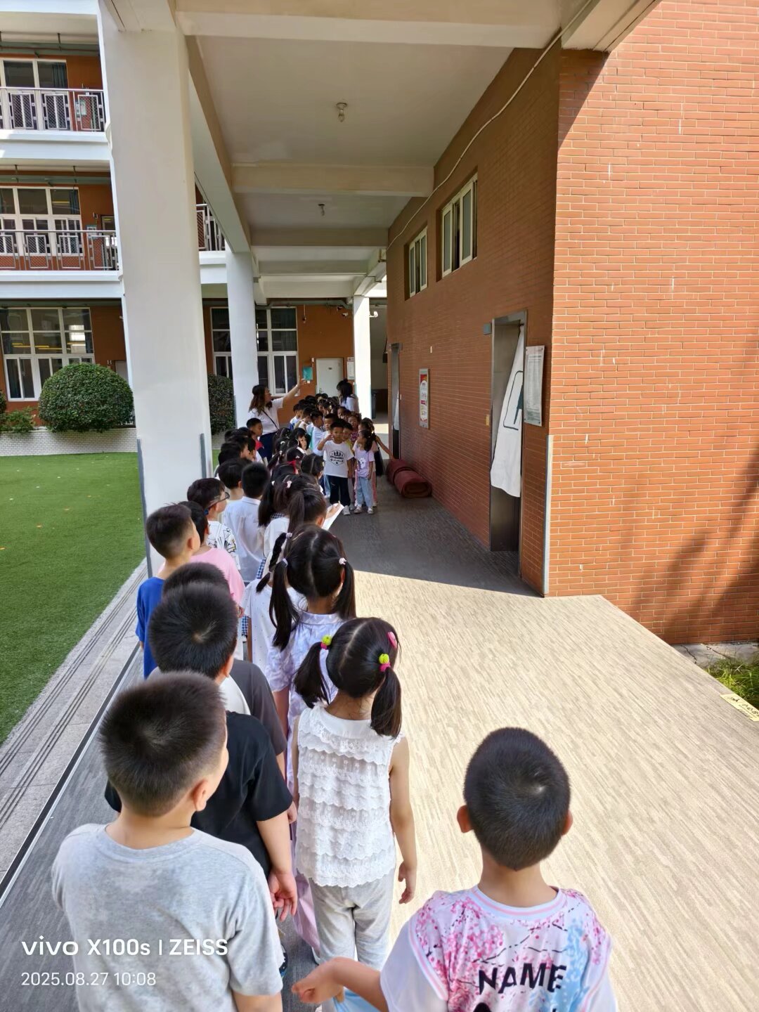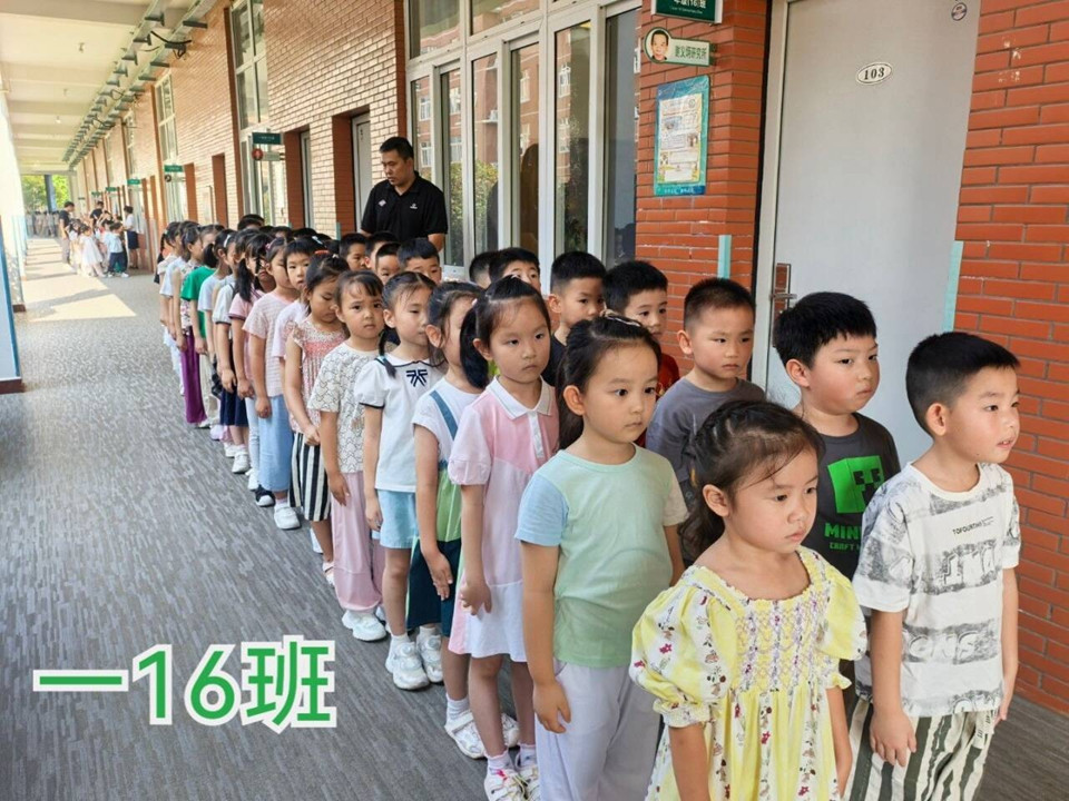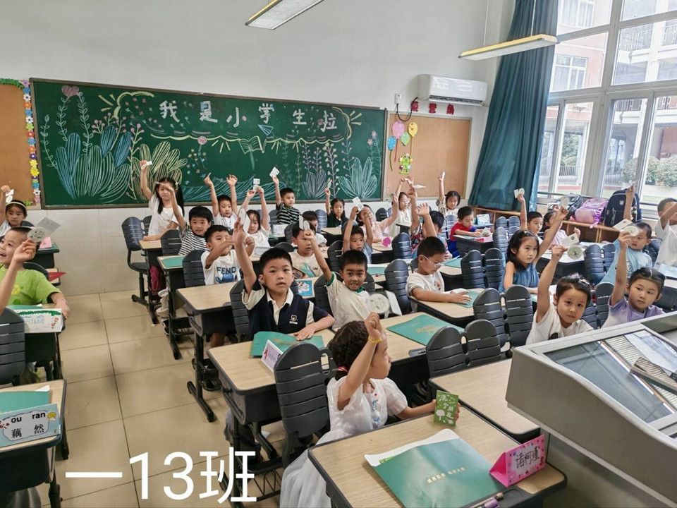 “交友卡”互换活动鼓励孩子主动介绍自己、结识新朋友;常规训练则帮助他们初步建立规则意识和集体观念。最后,各班拍摄首张集体合影,定格初为小学生的张张笑脸,珍藏“幸福成长”的起点瞬间。