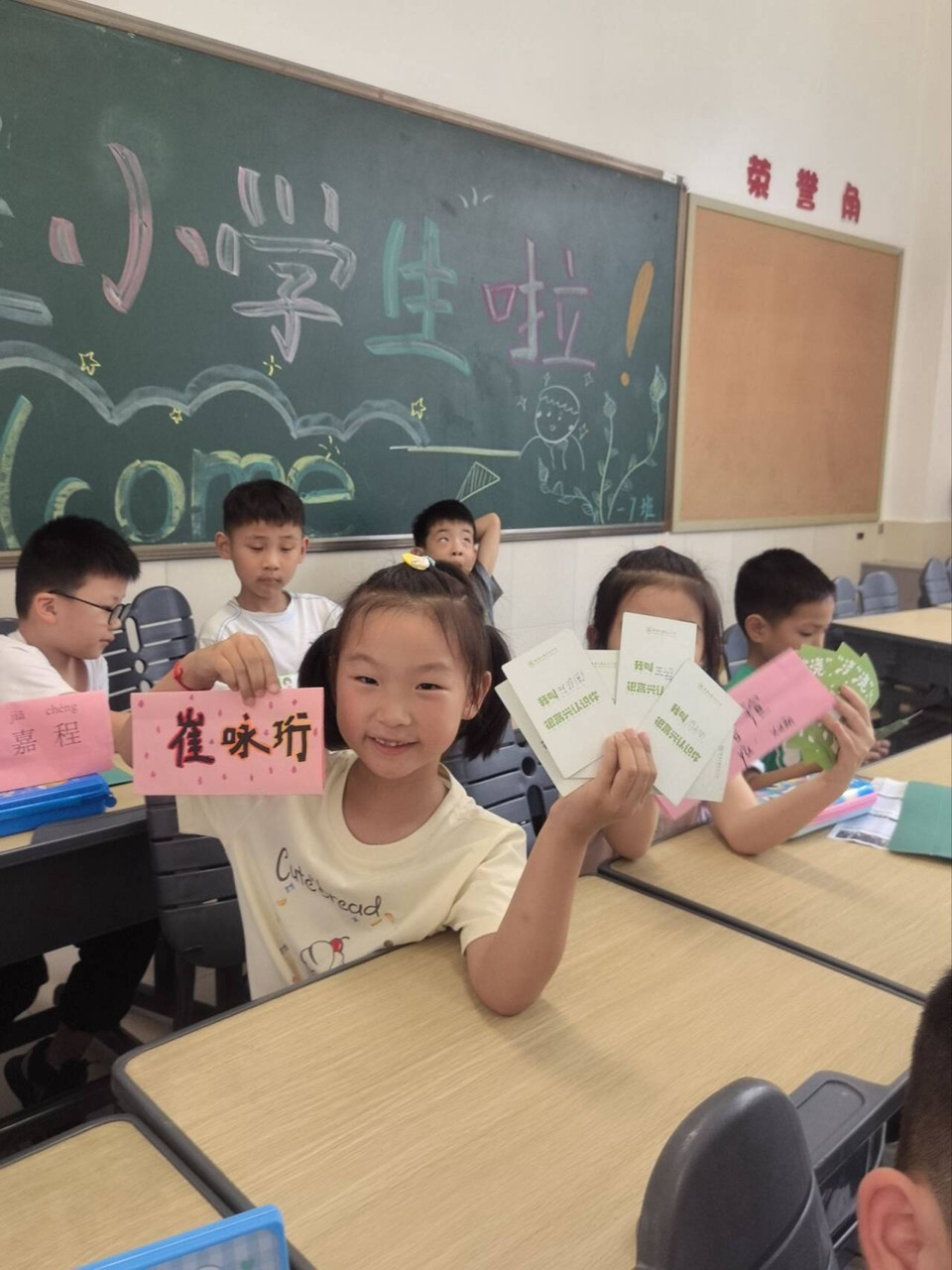 仪式感是教育不可或缺的部分。在充满期待的“入学礼包”赠送仪式上,朱国军校长为新生代表送上了满载惊喜与寓意的礼物。内含的校园探索打卡单、好友互动卡、甜蜜棒棒糖和希望种子卡,不仅仅是礼物,更是学校引导孩子们主动探索、积极交往、感受快乐、播种希望的匠心设计,标志着孩子们丰富多彩的小学生活正式拉开帷幕。