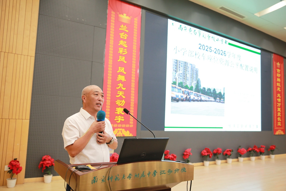 随后,朱国军校长以《追寻适合儿童发展的教育》为题,深度解读了学校的办学理念与文化内核。学校秉承南师附中“诚朴雄伟”的校风和“嚼得菜根,做得大事”的校训,致力于提供一种“向下扎根,向上生长”的教育,让每一个孩子都能在这里找到适合自己的发展节奏,感受分校的温度,最终成长为具有分校特质、中国灵魂、世界眼光的现代公民。