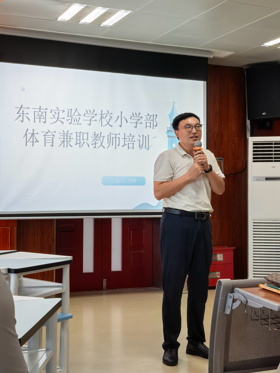 为深入落实江苏省教育厅“每天一节体育课”的政策要求,进一步提升小学体育教学质量,切实保障小学生身心健康发展,南京东南实验学校小学部于2025年9月16日下午在多功能厅启动了小学体育学科兼职教师专项培训活动,兼职体育教师全员参训。