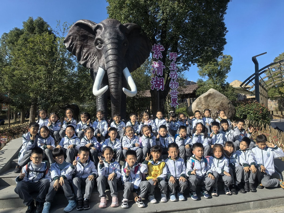 在紫清湖野生动物乐园,一年级的小朋友们开启了一场萌宠发现之旅。小火车载着孩子们穿梭在野生动物园区,与梅花鹿、斑马、鸸鹋等动物不期而遇。最让孩子们欣喜的是温顺的弯羚羊主动靠近,在老师的指导下,孩子们小心翼翼地喂食,建立起与动物的纯真友谊。创意手工环节,孩子们用落叶、松果制作动物模型;“国际大马戏”的精彩表演,更让孩子们感受到技艺之美。这场萌宠探秘之旅,在孩子们心中种下了关爱动物、热爱自然的种子。