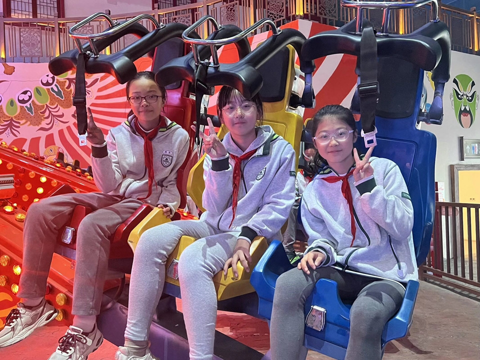 在仙林万达茂,五年级学生进行了一场非遗文化探索之旅。“云锦织阁”前,流光溢彩的织锦工艺令学生驻足赞叹,金线织就的龙凤纹样在灯光下熠熠生辉。通过专业讲解和“织阁飞椅”的互动体验,学生们深入了解了这项南京非遗技艺的独特魅力。在游乐体验中,卡丁车赛场锻炼勇气,电玩区域培养专注,传统与现代在此完美交融。这场研学让学生们感受到地方文化的深厚底蕴,增强了文化自信和传承意识。