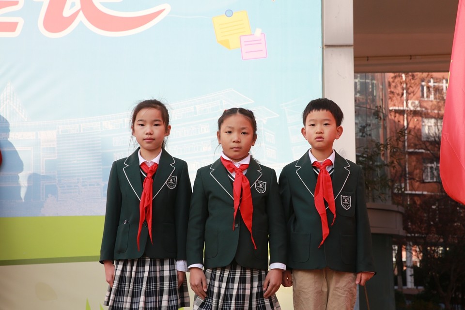 本次升旗仪式由三(4)中队承办。在辅导员武昀老师及陈奕鸣、沈君君老师的共同引领下,该中队展现出良好的精神风貌。王梓衿、阚一末、曹嘉蔓三位队员担任旗手。伴随着雄壮的《义勇军进行曲》,五星红旗冉冉升起,全体师生肃立行注目礼,少先队员行队礼,场面庄严隆重。