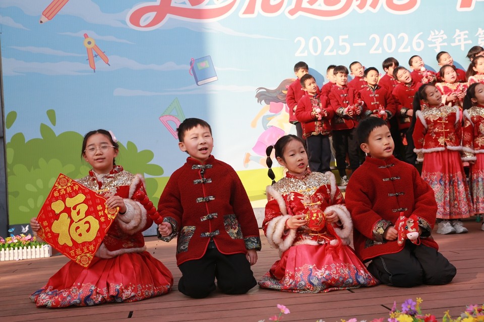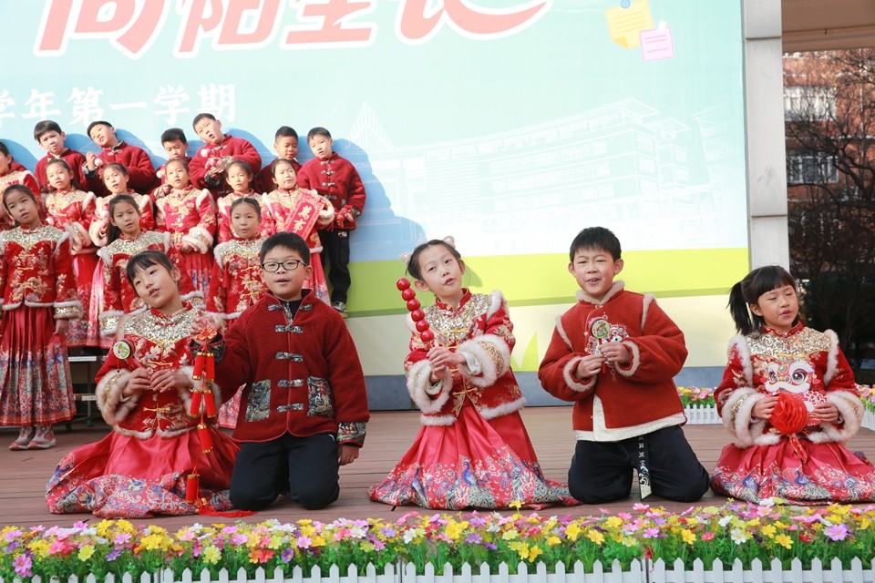 活动最后,三(4)中队全体队员带来古诗吟诵《元日》及创意舞蹈展示。孩子们用清朗的诵读传递古典诗词中迎新纳福的传统文化意蕴,并以活泼欢快的舞步展现当代少年儿童的蓬勃朝气,表达了对新年的美好憧憬。