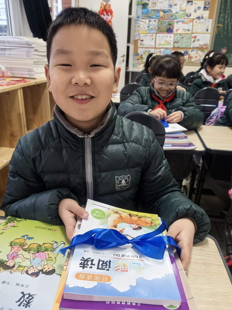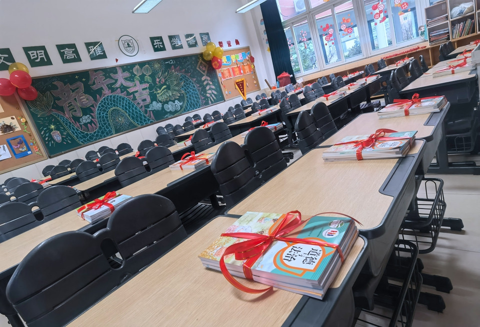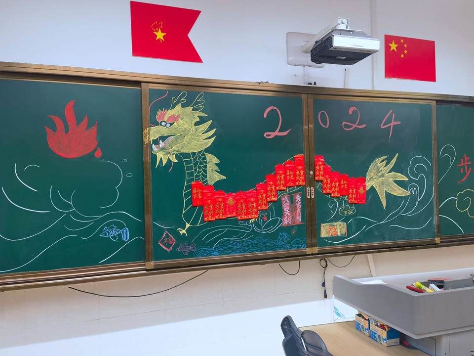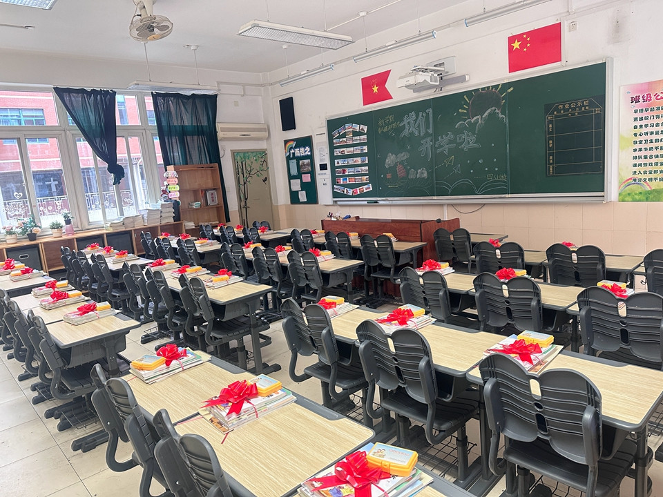 开学前两天,老师们就早早来到学校,领取教材、打扫卫生、布置教室,只为同学们回到熟悉的校园,依然能感受到家的温暖。大红的福字、叠高的饮料、甜蜜的棒棒糖、喜庆的烟花……都凝聚了老师对我们的爱。