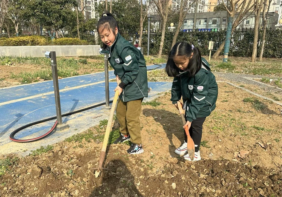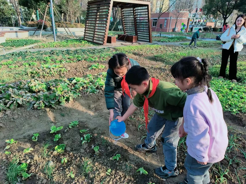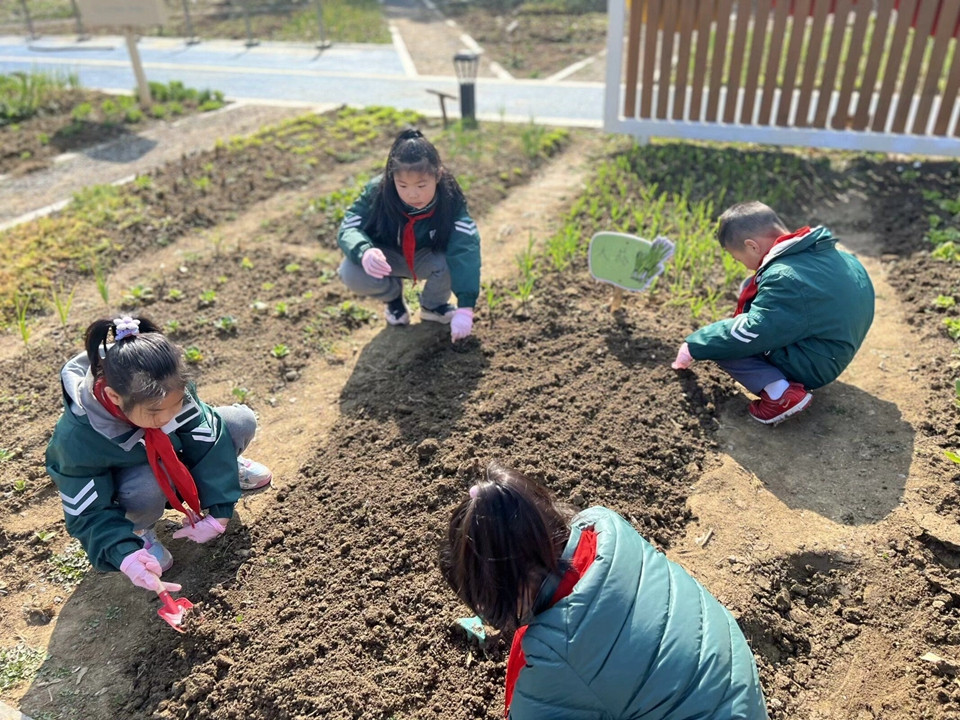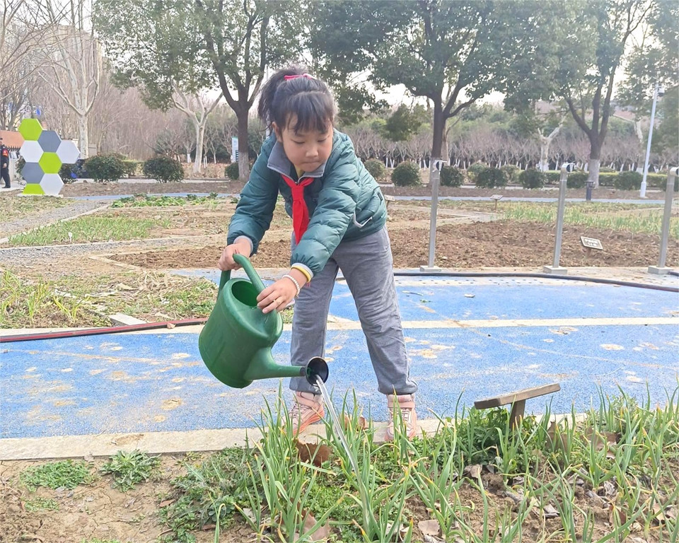 分别一个寒假,让同学们牵挂的还有咱们的农作园呢,拔拔草、浇浇水、松松土……大家在老师的指导下,一起守护自己班级的小田地。