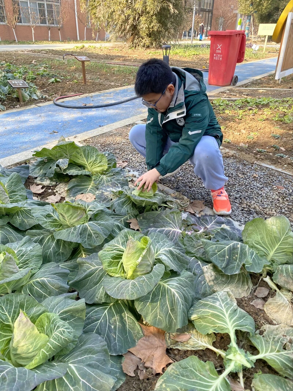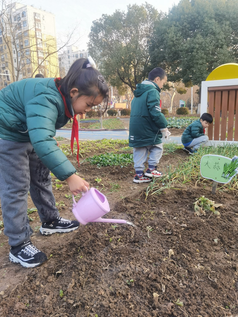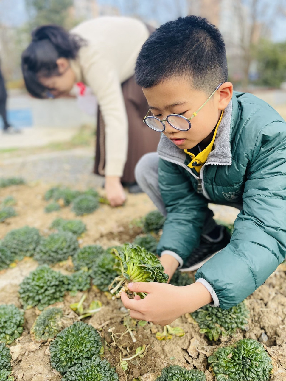 分别一个寒假,让同学们牵挂的还有咱们的农作园呢,拔拔草、浇浇水、松松土……大家在老师的指导下,一起守护自己班级的小田地。