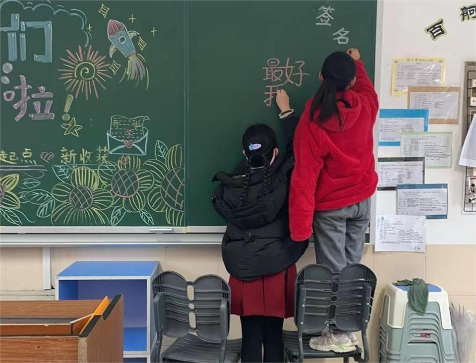 师生齐动手 教室换新颜
