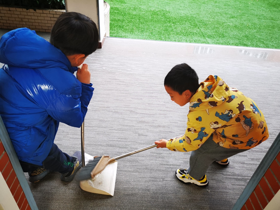 当然,劳动小明星可不仅仅在农作园出现,教学区里也有很多同学都在主动劳动,打扫教室、布置板报、整理书本