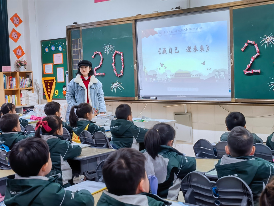 同学们陆续到达教室,与老师、同学叙旧后,学部进行广播讲话,小学部何明涛副校长做了《赢自己 迎未来》的主题演讲,激励同学们制定“赢自己”的目标并付诸行动,各班同学认真倾听。