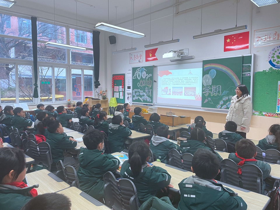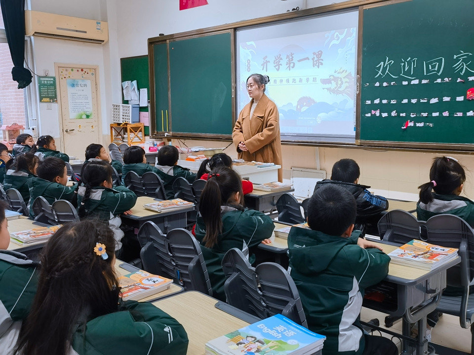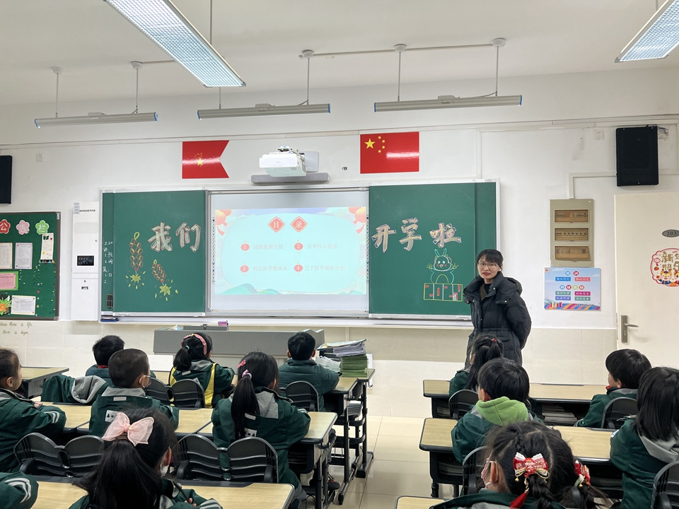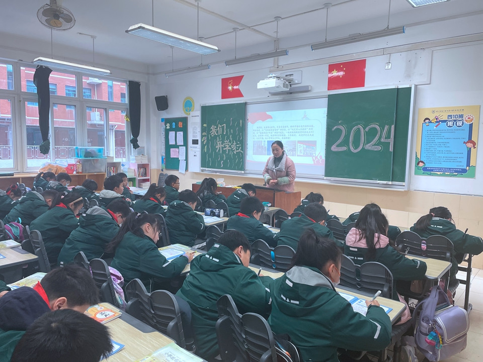 班主任老师组织同学们召开“开学第一课”主题班会,就行为常规、安全教育、心理教育等问题展开讨论,制定新学期计划。