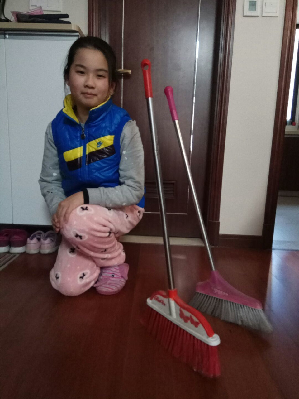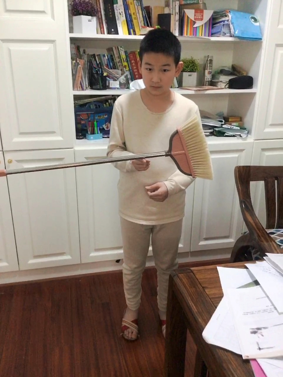 前一段时间网络上热传的关于“扫帚站立”的问题,有人宣称2月11日那天是地球引力最特殊的一天,所以只有那一天才能做到。在这周的居家科学课堂里老师就额外布置一项任务让同学们在家自己实践检验这个说法是否正确。同学们经过测试重心的实验,发现扫帚的重心靠近底下扫帚毛部分。当扫帚毛劈开,扫帚杆和重心在一直线上,就很容易直立起来。从而发现这一说法是错误的。