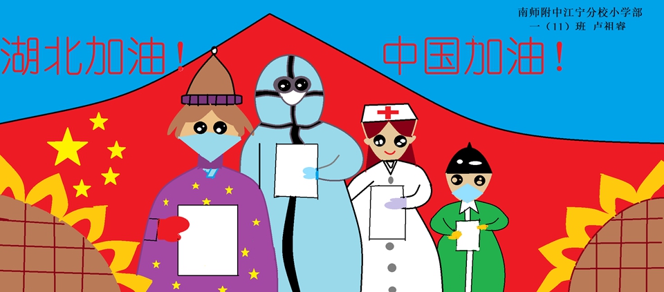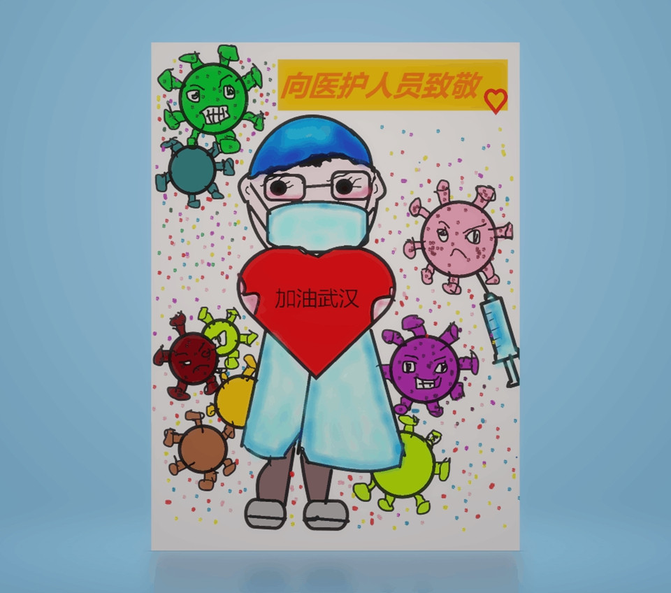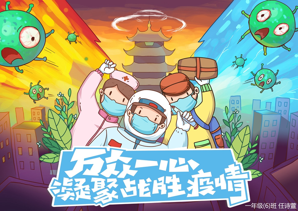 在疫情期间,信息老师还在线上分年级指导学生的电脑操作,将抗疫精神融入到教学中,课堂中同学们专心致志地练习,制作出心中的抗疫画面。