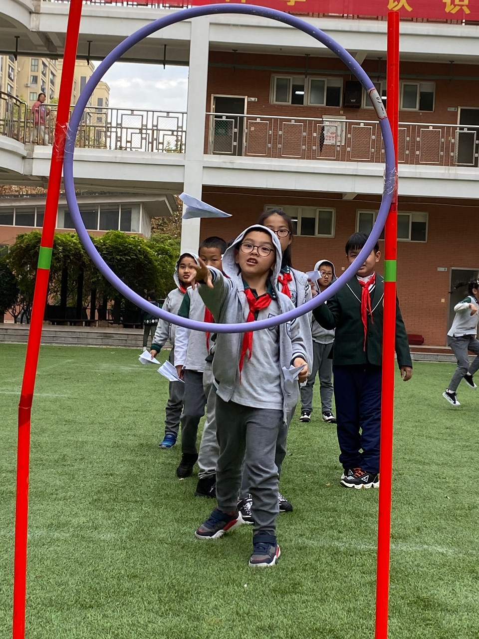 此次纸飞机竞技赛共分为纸飞机直线距离比赛和纸飞机标靶赛两个个项目。比赛过程中,每个班级的每位选手做好了充分的准备。预备,起飞,入环。预备,起飞,飞远了。一个个小选手都气势十足,发挥出自己的最佳水平。比赛过程中,班主任亲临指导及拍照留念,同班同学为选手呐喊助威,活动现场紧张、活跃而又有序。