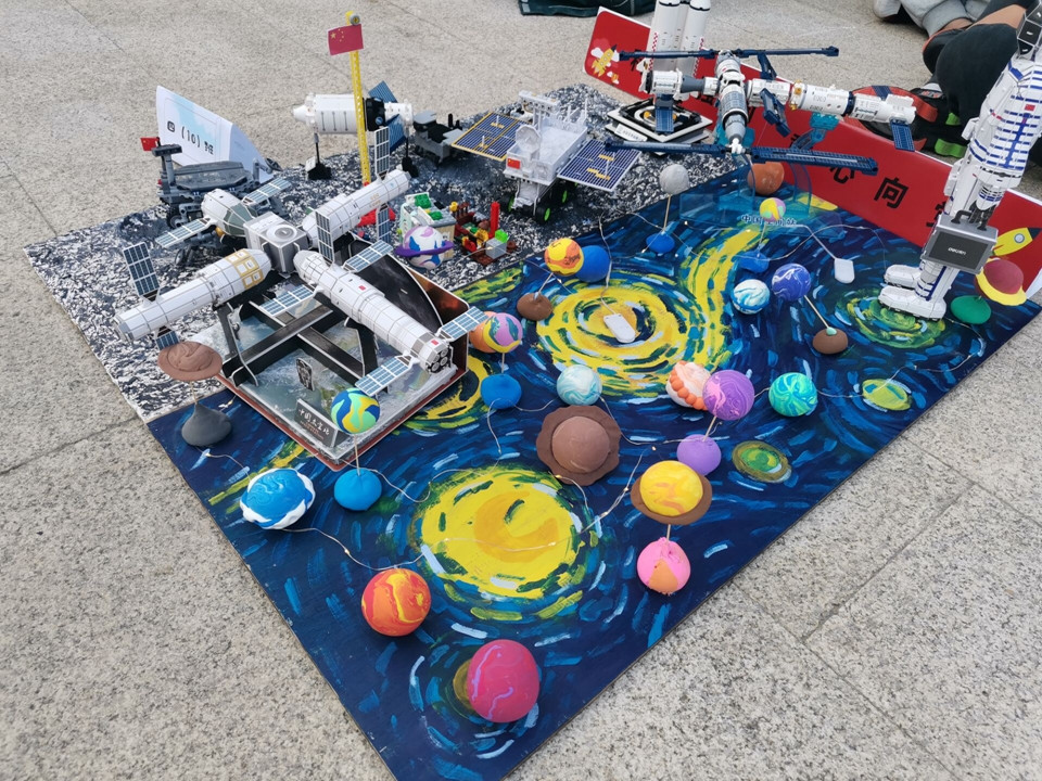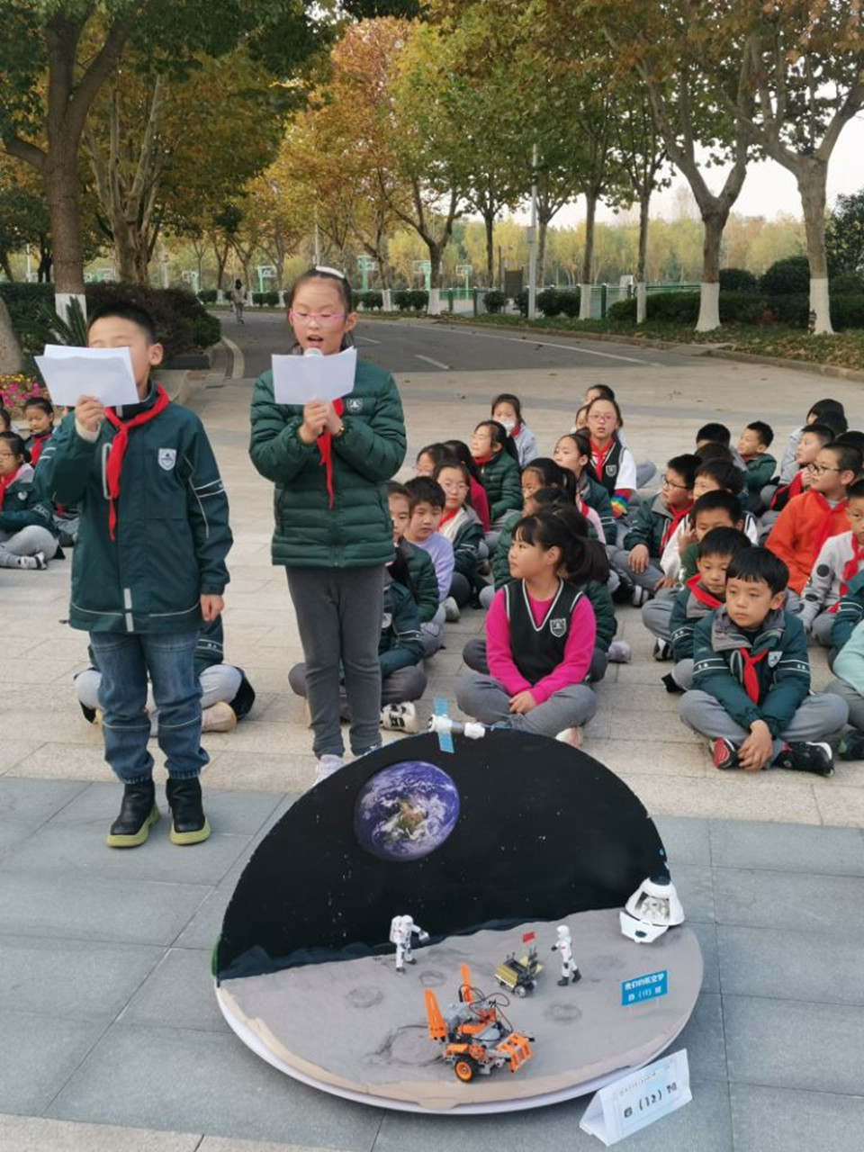 2021年11月,我校每年一度的科技节正式拉开帷幕,16日下午第四节课,四年级全体师生齐聚小学部升旗广场进行创客模型的展评活动,为期两周的准备时间,孩子们利用信息技术手段进行创新设计,用模型作品来展示中国共产党建党百年以来,在各个领域取得的伟大成就。展评现场,每班由学生代表对本班的作品进行解说,分享他们制作的过程以及作品表达的意义。整场活动井然有序,他们赛出了风采,亦表达了少先队员满满的爱国情怀!