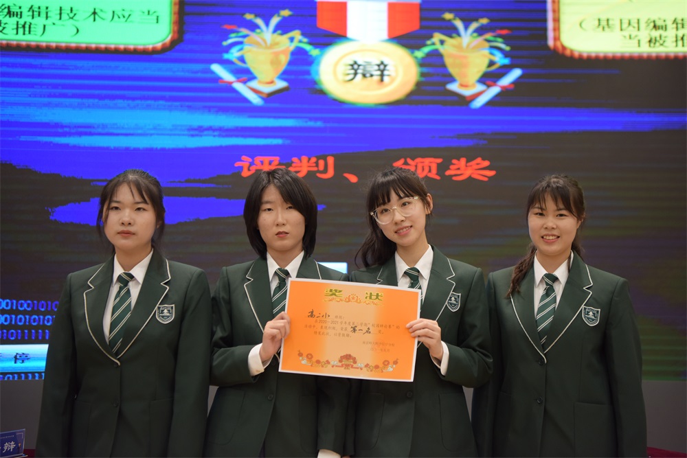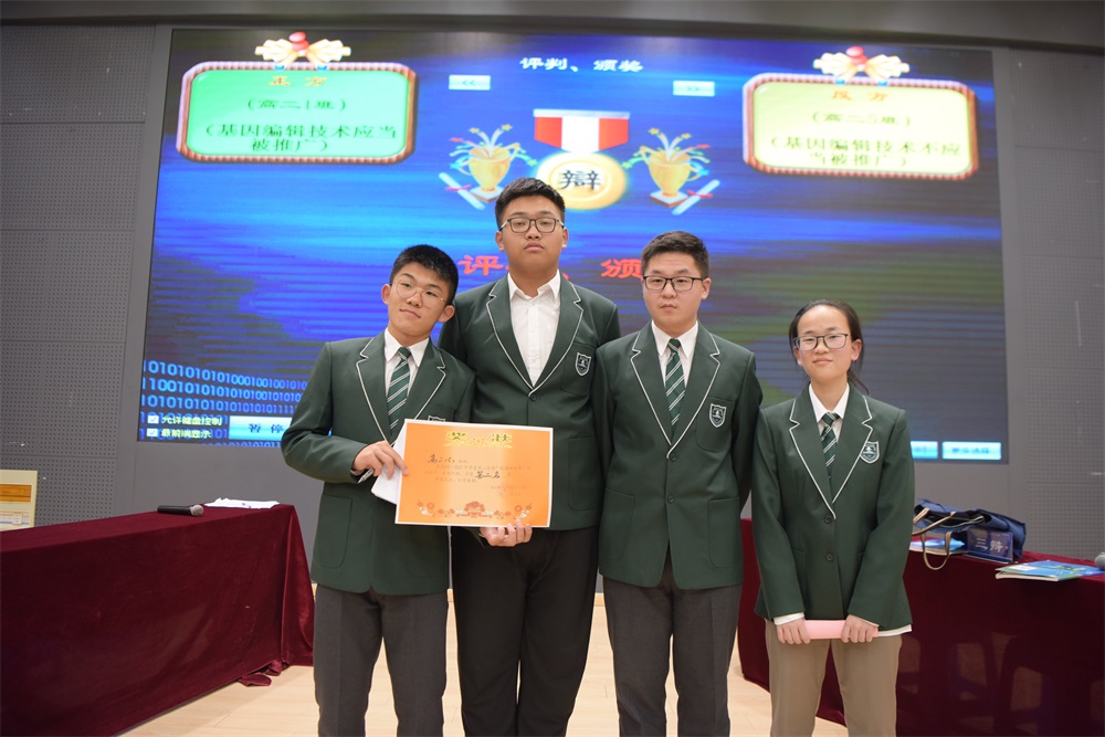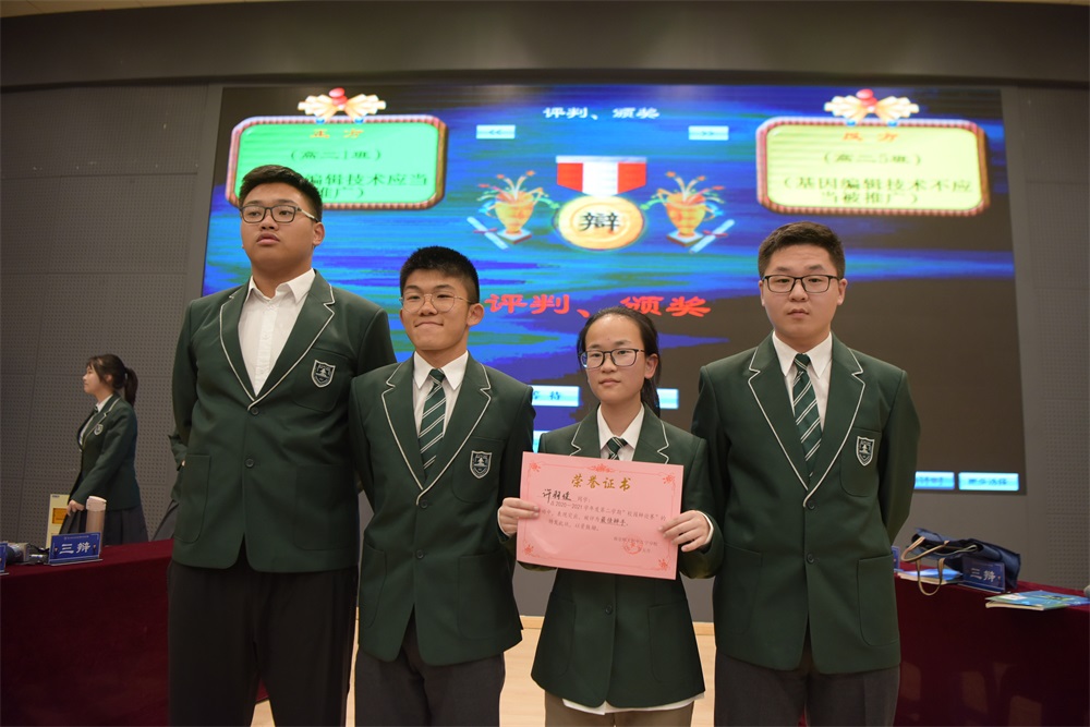 2021年5月12日下午,高二(1)班与高二(5)班的辩论赛决赛在报告厅举行。双方的辩题是“基因编辑技术应不应当推广”。高二(1)班取得了最终的胜利。