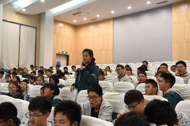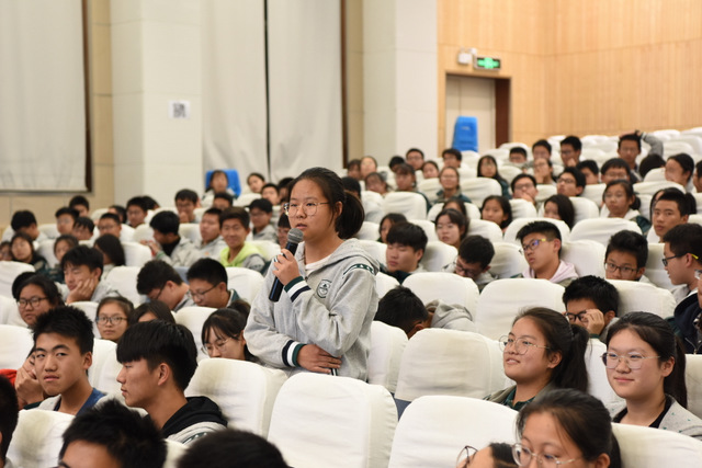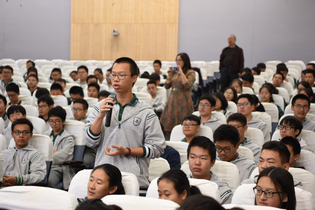 在讲座最后的交流环节,是高一7班的时子延、高一4班 樊笑妍、高一5班荀雯三位同学分别就人工智能与生物神经连接、人工智能与未来就业方向、人工智能的思维是趋向于感性还是理性等问题与漆教授展开交流。漆教授高度评价了同学们的提问,并一一作了解答。