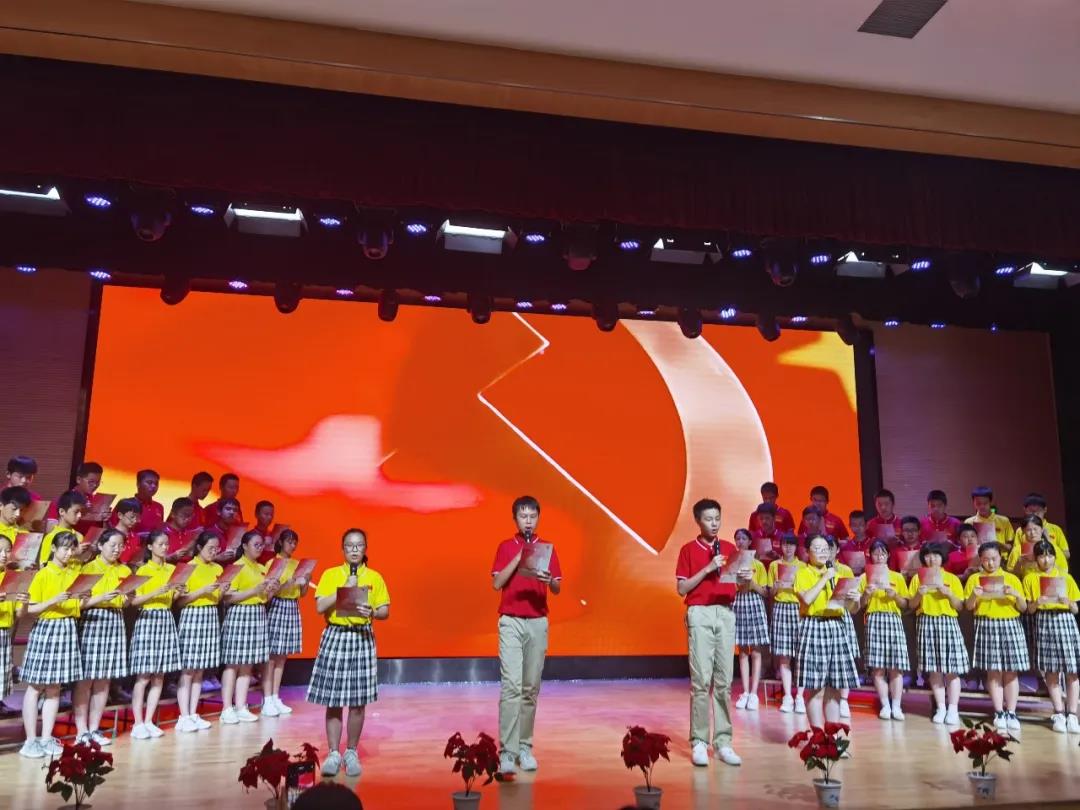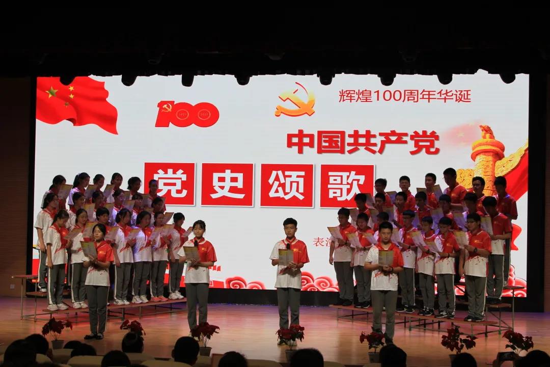 百年风霜,道阻且长;红船指引,再创辉煌。中国共产党走过百年风雨,激发了国人的强国梦,“爱国、进步、民主、科学”的精神火炬,经一代又一代仁人志士的传递,正由当代青年高擎,迈向未来。孩子们吟诵峥嵘岁月,演绎激越篇章,唱响红色经典,抒发爱党、爱国的炙热情感。或载歌载舞,或铿锵传颂,不同的表达方式,同样的深深祝福。