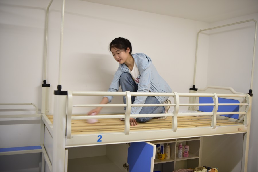 宿舍里,与想象中“直接入住”不同,新同学们的第一项任务是“自己动手”——打扫卫生、整理床铺、归置桌面。不一会儿,原本空荡的宿舍焕然一新,这不仅是一次简单的劳动,更是一堂关于“独立”的必修课——许多学生第一次学会套被套、第一次意识到“公共空间需要共同维护”。