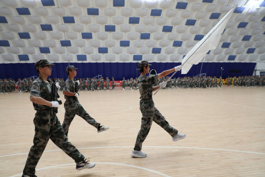 2025级高一新生军训及入学衔接教育接近尾声,经过几日的磨砺,同学们的眼神愈发坚毅,步伐更加铿锵。在最后的训练中,他们以饱满的热情投入到分列式彩排中,每一个摆臂都争取标准有力,每一次踢腿都尽力整齐划一,口号声回荡在校园,彰显着青春的朝气与力量,以挺拔军姿迎接军训总结时刻。