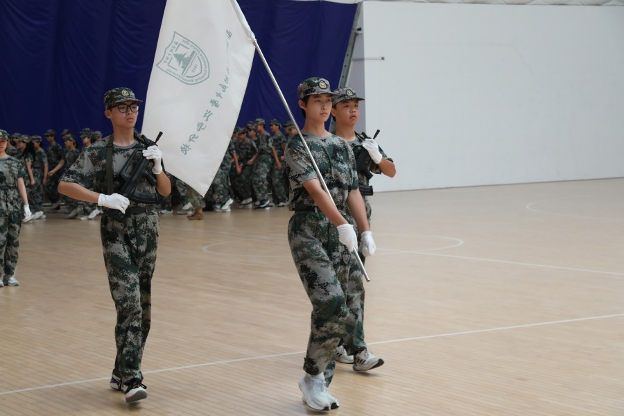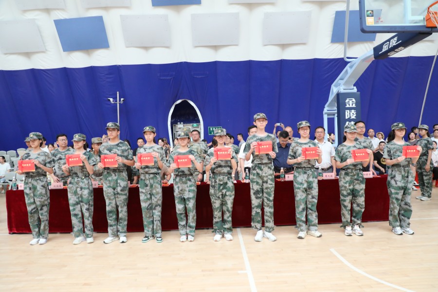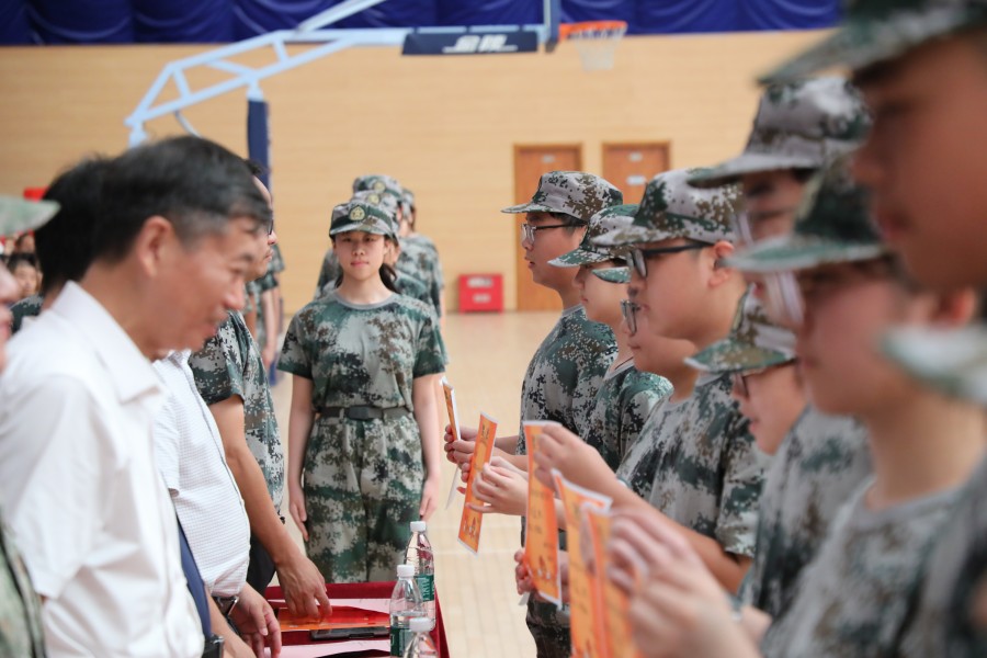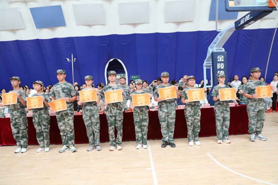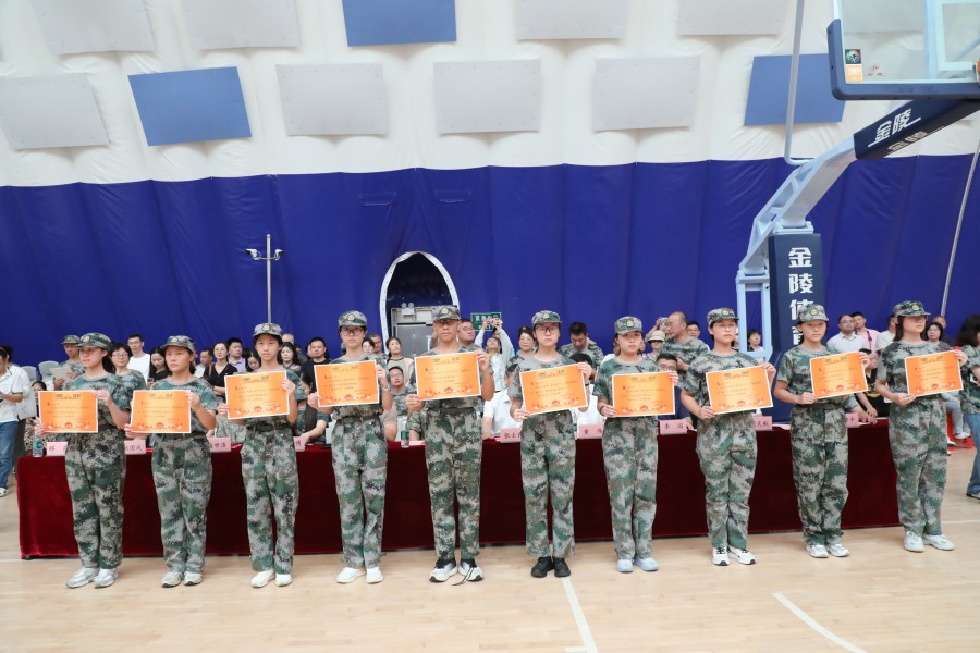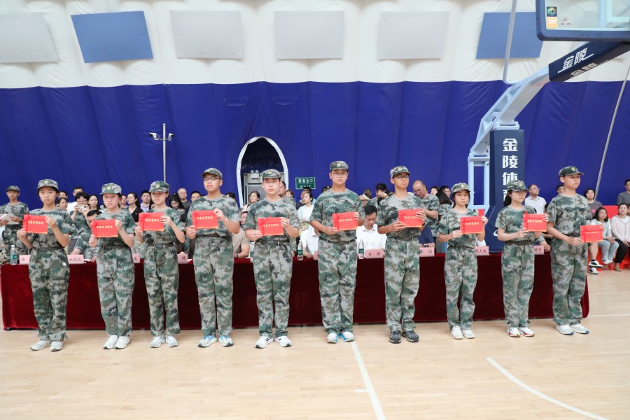 【颁奖仪式】在军训及入学衔接教育中,很多同学坚持不屑、挑战自我,表现突出,每个连队都展现出团结进取、勇于拼搏的品质。为表彰先进,学校特别设立了“优秀学员”“优秀常规管理”“综合实力优秀连队”等多个个人和集体奖项。高中部副主任移燕老师主持军训总结