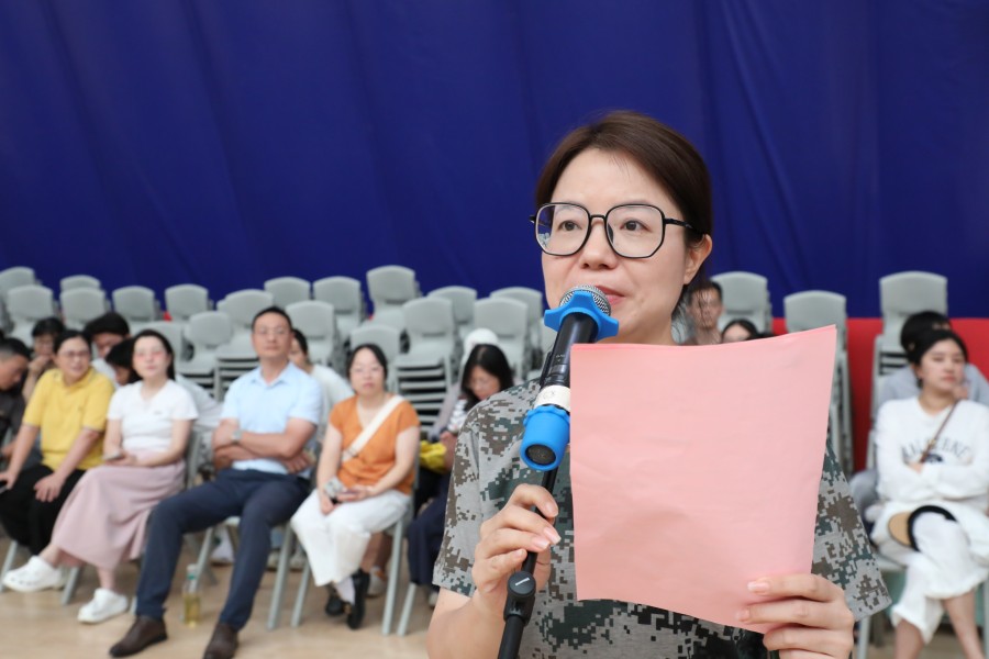 学生发展中心主任高博老师宣读跑操比赛结果.