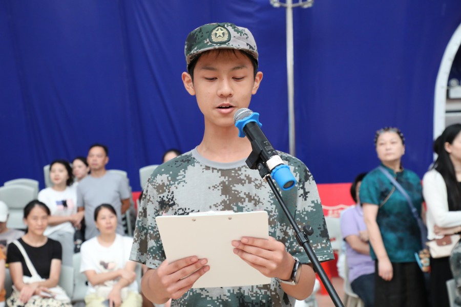 【学生代表发言】高一(4)班范朗作为学生代表发言。他将军训心得化作铿锵语句,道出了所有同学的成长感悟,引发了全场强烈共鸣。他的每一句话都掷地有声,展现出了新时代青年的思考与担当。