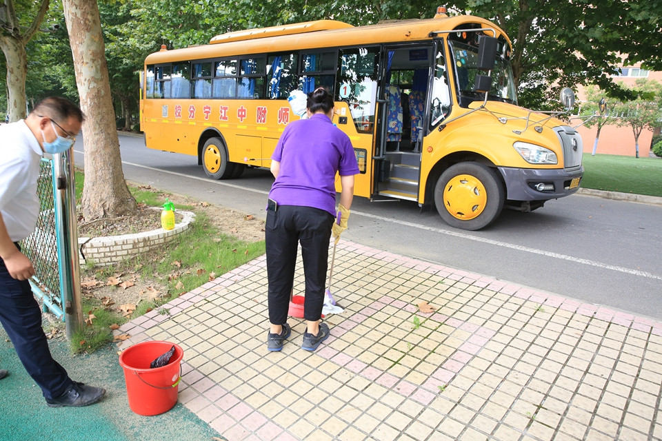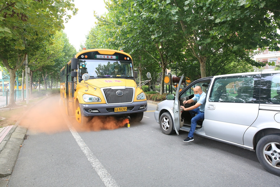 2021年9月7日上午十点,小学部校车安全突发事件应急处理“二合一”演练在校园校车停车场举行,车队全体驾驶员及部分随车照管人员参加了演练,通过预设与即时响应流程演练,圆满达到预期目标。