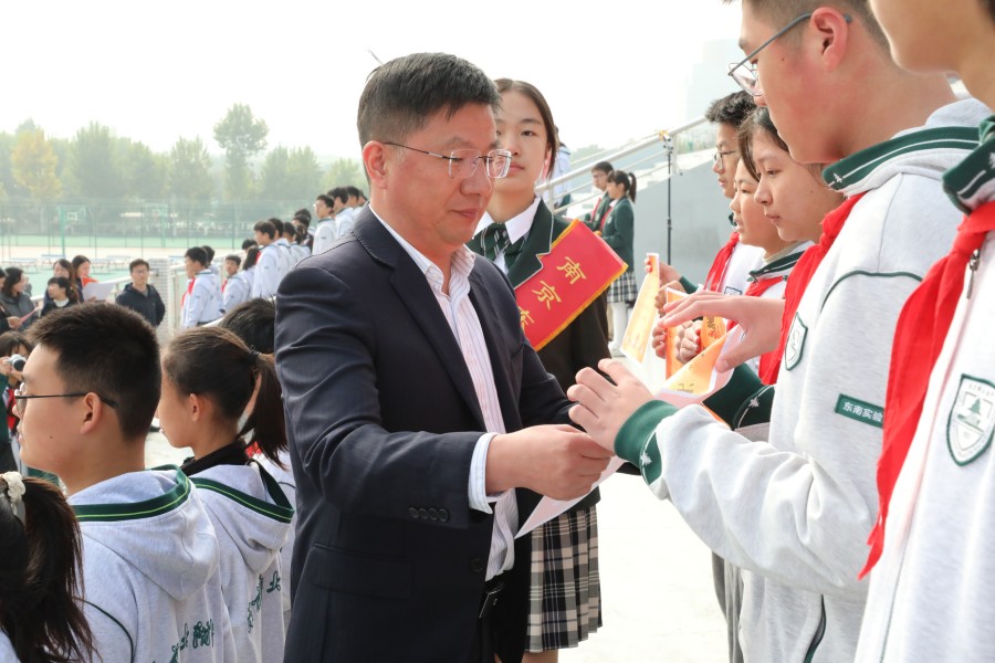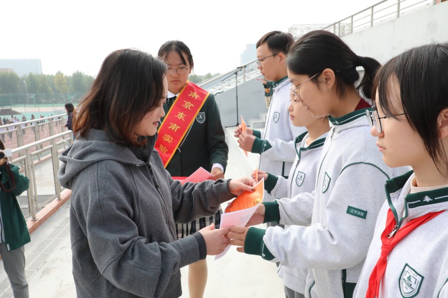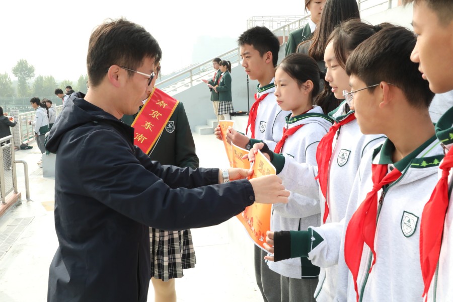 最令人期待的表彰环节如期而至。南京东南实验学校副校长、初中部校长石爱平老师上台,庄重宣读初中部获得团体总分奖、最佳组织奖、道德风尚奖的获奖班集体名单。