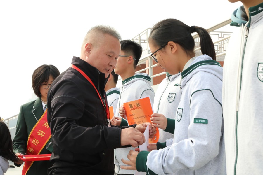 初中部年级主任蒋斌老师、赵雷老师、陈舒老师为团体总分获奖班级颁奖。