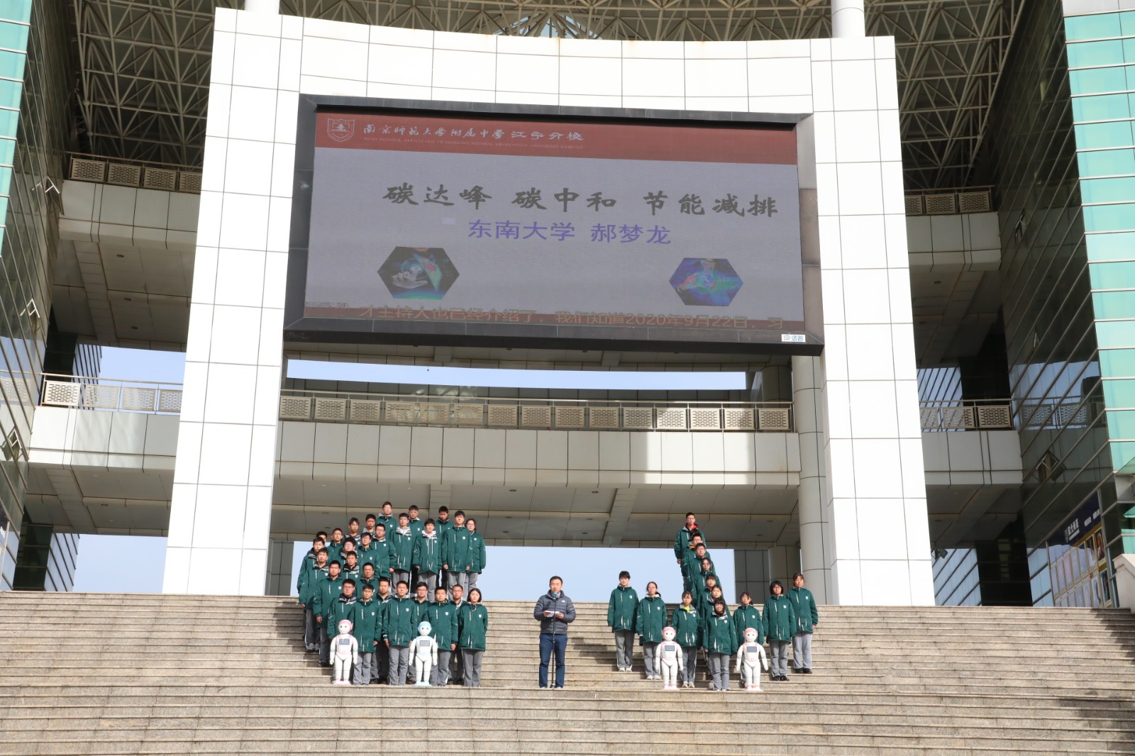 本次升旗仪式,我们荣幸的邀请到东南大学能源与环境学院教授,国家高层次人才,江苏省双创人才郝梦龙教授为我们带来了主题演讲《碳中和事业,呼唤有创造力的中国青年》。郝教授以诙谐风趣的语言,向全体师生科普了什么是碳中和,以及实现这一目标对气候变化,日常生活等的重要意义。