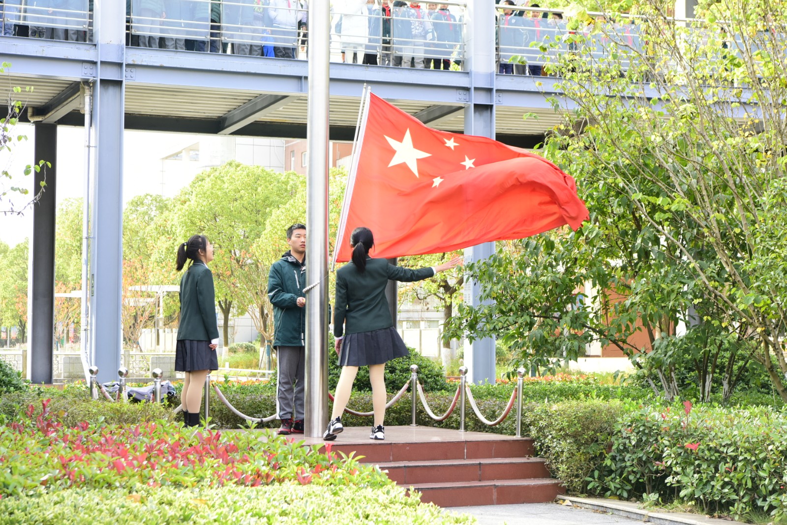 本次升旗仪式由高二1班承办,升旗手王思睿,原国旗班成员;护旗手钟欣雨,高二(1)班班长;护旗手李卓然,高二(1)班纪律班长。