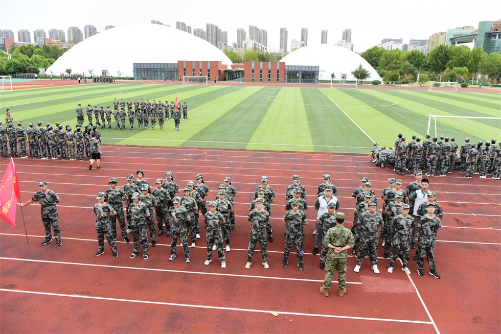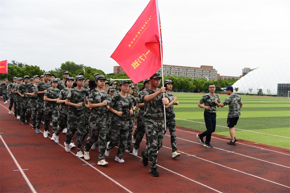 清晨,操场上微风习习。伴随着喇叭里雄壮的口令声,整齐的脚步声,南师附中江宁分校高中部和国际部的14个连队已经开始第一次跑操啦!看,他们个个抬头挺胸,精神饱满,斗志昂扬,展示出了当代高中生靓丽的青春风采。