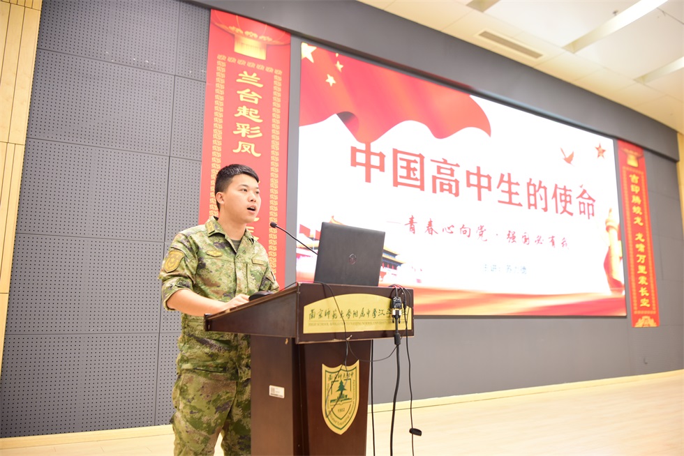 下午2点,同学们在报告厅聆听了部队教官作的题为《中国高中生的使命》的国防教育讲座。讲座生动活泼,深入浅出,赢得了同学们的阵阵掌声。教官从佩洛西窜台这个特别政治事件入手,详细分析了紧张复杂的国际形势,然后,结合高中生的生活学习实际,引导同学们在中华民族复兴的道路上,要立大志,明大德;成大才,担大任,做民族复兴的亲历者和建设者。同学们听后深受鼓舞,表示今后一定要好好学习,不负重托。国际部同学在音乐厅分享了学长王乐炎的题为《心中有梦 脚下有路》的生涯规划指导。