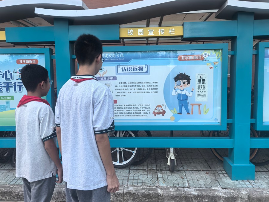 为推动近视防控宣传常态化,学校及时更新了校园主干道的 视力健康宣传栏。专栏内容经过校医室精心筛选,涵盖 儿童远视储备是什么”“不同年龄段孩子视力标准”“近视后如何科学矫正等核心知识,还特别加入了 错误护眼谣言破除板块,如 “‘戴眼镜会让近视加深是误区,及时配镜才能控制度数。清晰的图文、权威的解读,让师生和家长路过时能随时学习、查漏补缺,真正让护眼常识 常学常新