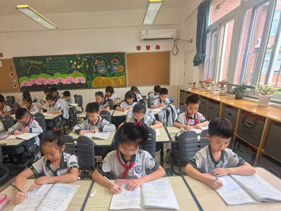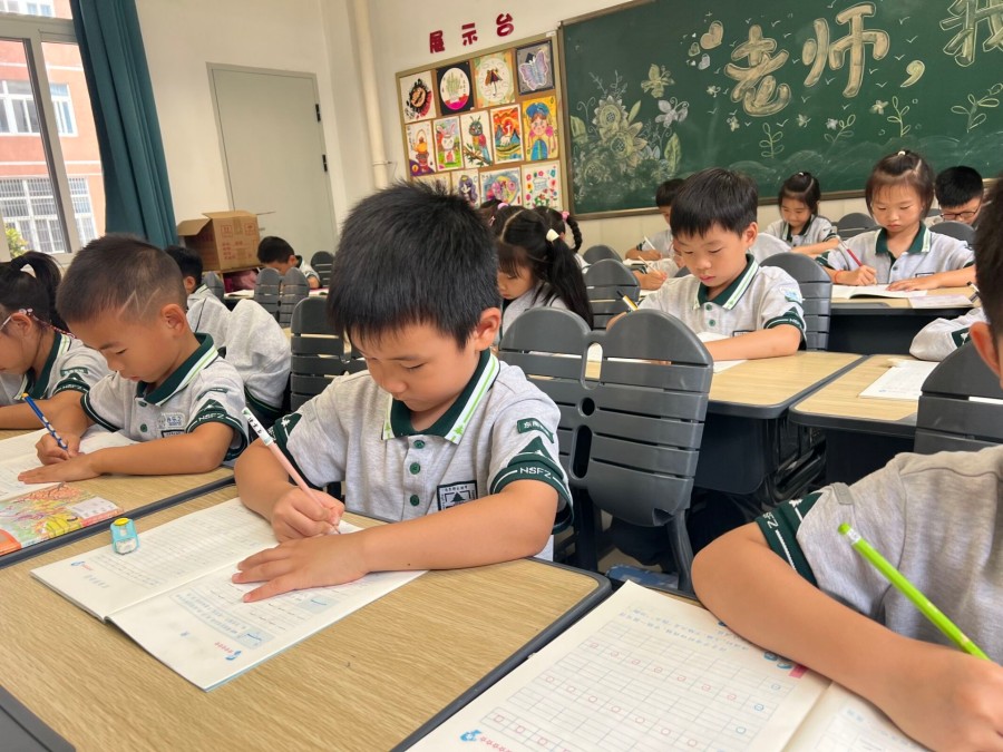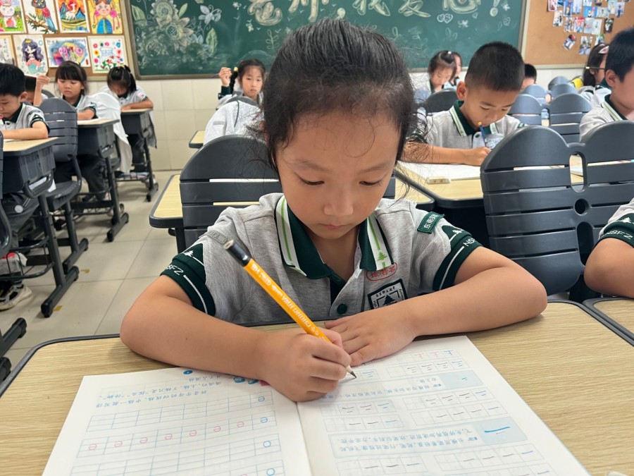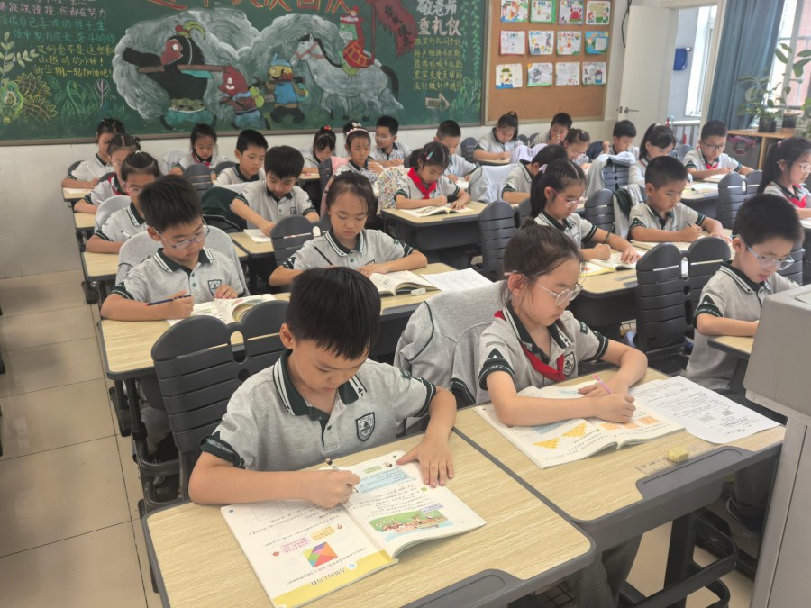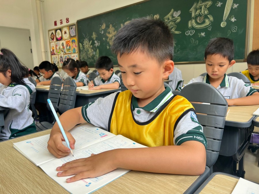 眼离书本一尺远,胸离桌沿一拳宽,手离笔尖一寸长 —— 大家跟我一起调整姿势!每天早读课开始前,各班级都会响起这样的提醒。学校高度重视学生读写姿势培养,将 三个一原则作为日常行为规范的重要内容:班主任们利用早读、自习课等时段,逐个检查学生坐姿,手把手教大家根据身高调整桌椅高度;课间还安排了 坐姿小监督员,发现同学弯腰、低头写字时,及时轻声提醒。此外,学校还特意为低年级学生配备了 坐姿矫正器,通过硬件辅助帮助孩子养成正确习惯,从细节处预防近视与脊柱不良发育。