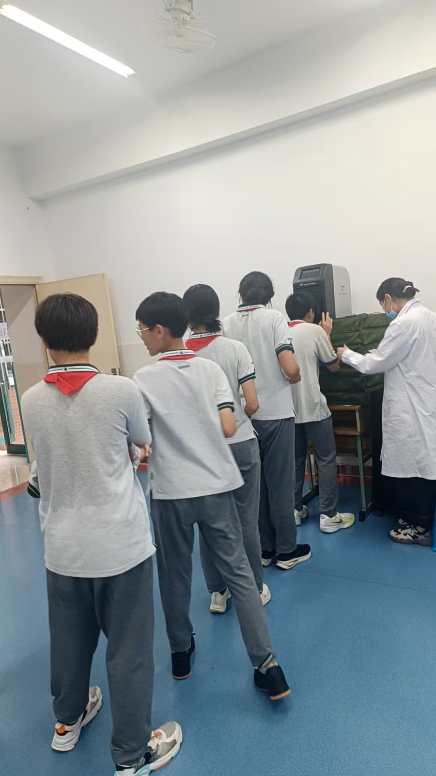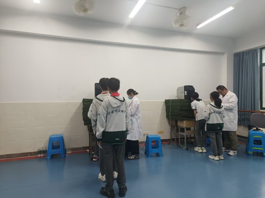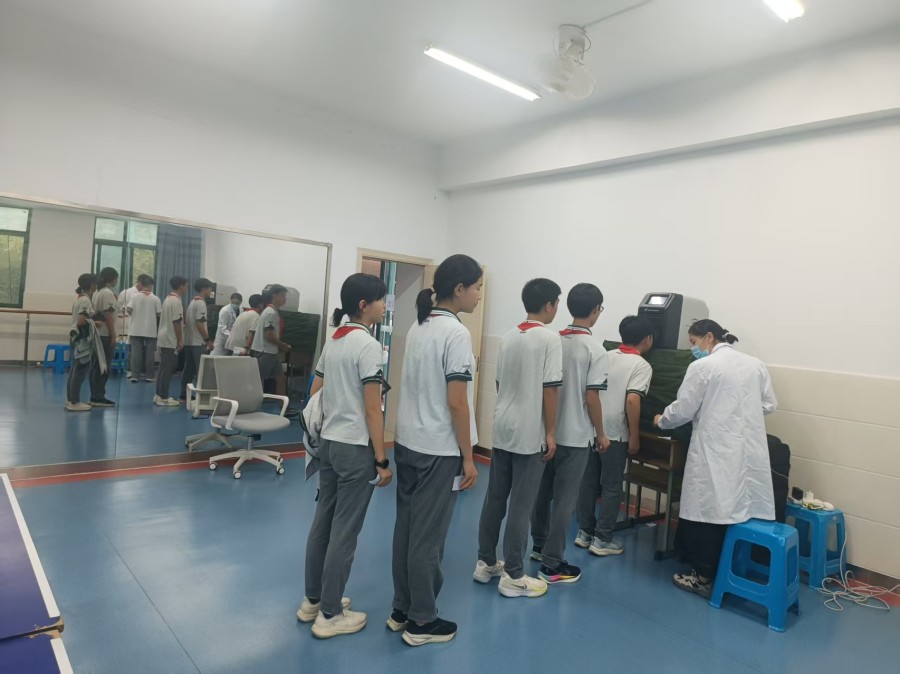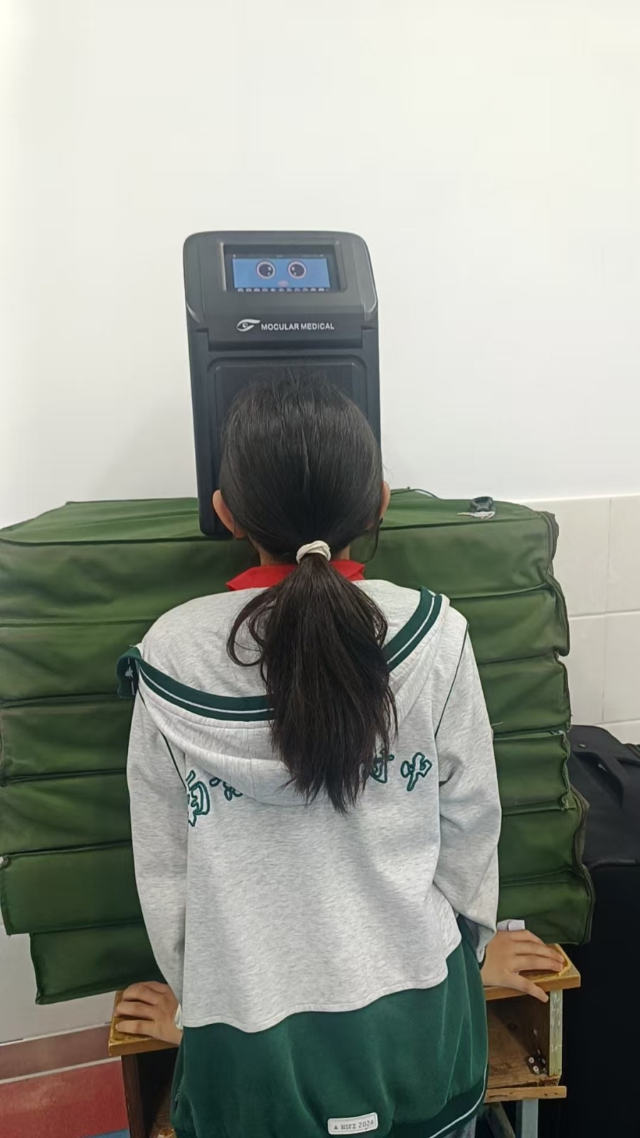 9 月中旬,学校联合专业医疗机构,为全体学生开展了一次全面的视力筛查。校医室提前制定筛查计划,分年级、分班级错峰进行,避免拥挤;筛查现场,医护人员耐心地为每一位学生调试视力表距离,细致记录裸眼视力、屈光度等数据,对筛查中发现视力异常的学生,还会进行二次复查确认。筛查结束后,学校第一时间将结果反馈给家长,并附上校医的个性化建议:建议带孩子到正规医院做散瞳验光”“日常注意控制电子产品使用时间。通过 早筛查、早预警、早干预,为孩子的视力健康争取最佳矫正时机。