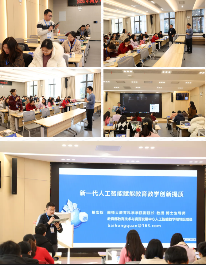 上午,南京师范大学教授柏宏权为老师们开设讲座《生成式人工智能赋能教育教学》。柏教授从人工智能技术的产生谈起,系统介绍了AI的关键技术,并结合具体案例演示了DeepSeek提示词的应用技巧,特别强调高质量提示词须具备“角色明确、场景具体、任务清晰、输出结构化”四要素。他进一步阐明,人工智能赋能教育有双重路径:一是通过减轻教师负担“赋能教育”,二是通过重塑人才培养目标“创新教育”。柏教授总结指出,掌握AI技术的教师团队将成为未来学校的核心竞争力。上午的讲座由常鸣华老师主持。