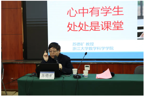 上午,浙江大学数学科学学院教授,拥有164万粉丝的微博大V苏德矿教授登台,倾囊相授《懂、透、精、趣、情、德,六字真经》。苏教授妙语连珠,将教学的奥秘娓娓道来。以“懂”为基,深“透”知识内涵;用“精”雕琢,添“趣”课堂氛围;怀“情”育人,修“德”立己树人。