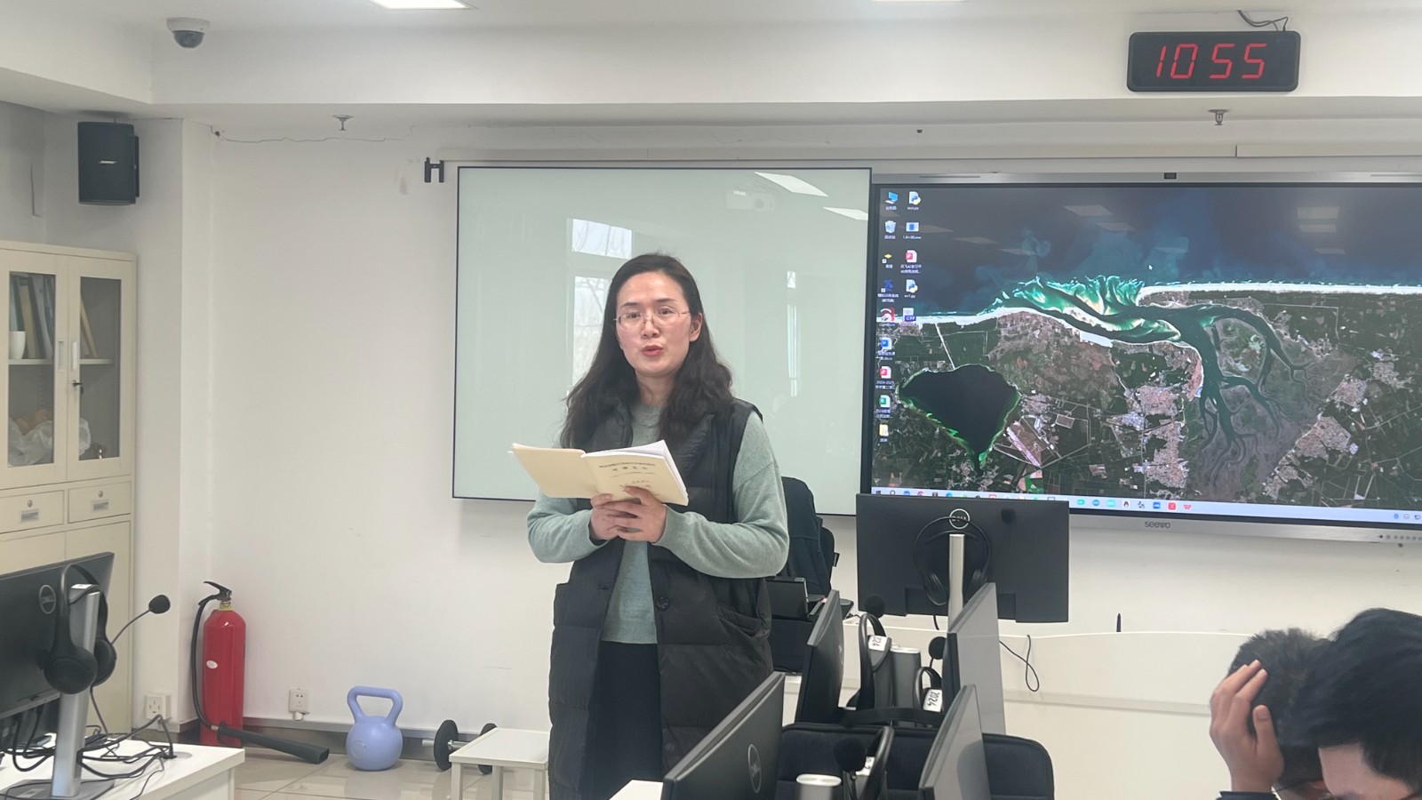 江宁区其他学校老师积极参与活动,并在课后集中在图书馆四楼机房三讨论交流听课心得,由秦淮中学刘付燕老师和临江高中的顾娟老师对公开课进行了评价,区教研员赵凯老师进行了总结。