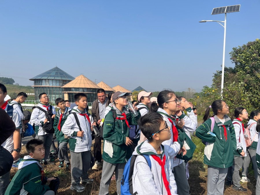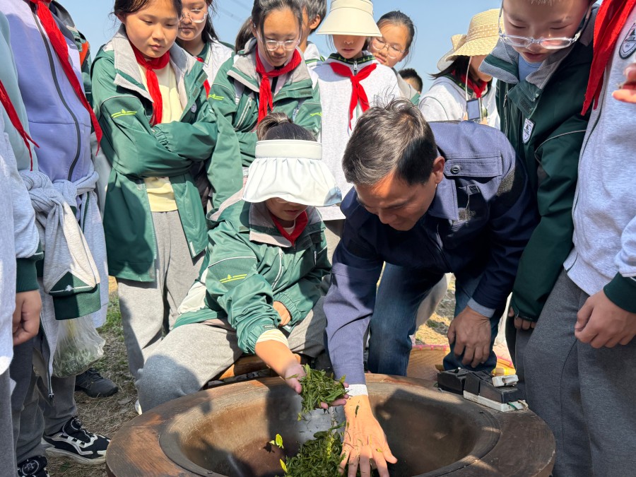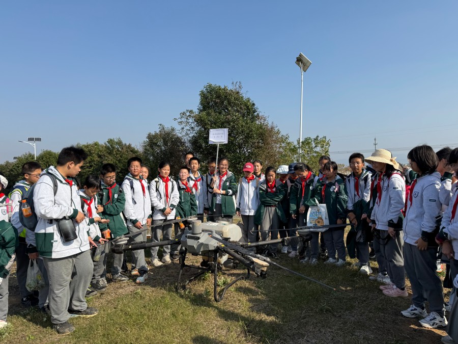 茶园里,同学们在指导下辨识一芽一叶的合格鲜叶,指尖轻捻、精准采摘,将鲜嫩的茶叶收入茶篓。随后,大家观摩了手工炒茶的“杀青、揉捻、干燥”全过程,看着嫩绿的茶叶在高温锅中逐步蜕变,鼻尖萦绕的沁人茶香,让大家直观感受到一杯清茶背后的匠心与辛劳。生态养殖区中,同学们了解了“种养结合”的生态模式,观察了鸡舍布局与饲养场景,对生态农业的可持续发展有了直观认知。此外,农业无人机的演示让同学们眼前一亮,看着无人机完成播种作业,大家真切感受到科技为传统农耕带来的效率变革,激发了对科技创新的探索热情。