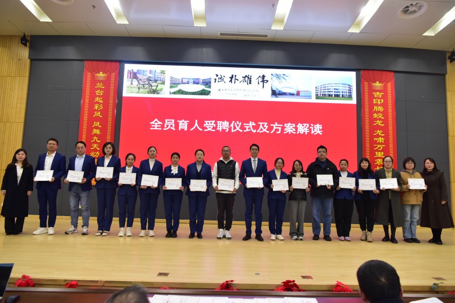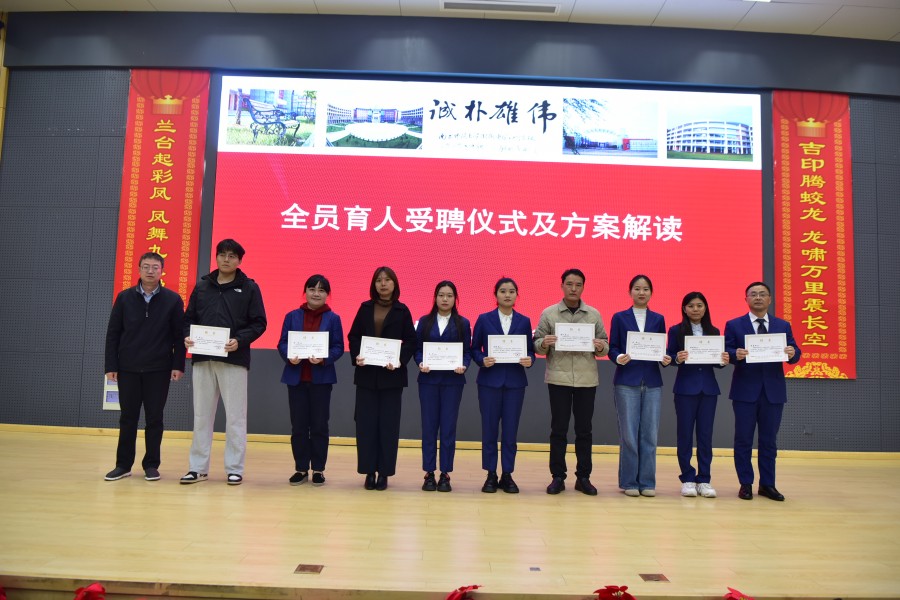 为落实立德树人根本任务,构建全方位育人体系,大会举行了全员育人受聘仪式。冯锟主任详细解读了学校全员育人方案,明确了育人目标与职责,希望各位导师以爱心、耐心和责任心陪伴学生成长,成为学生成长道路上的引路人。