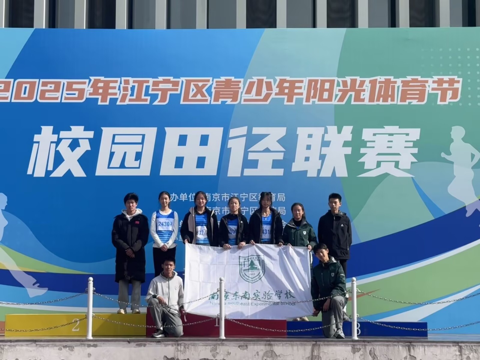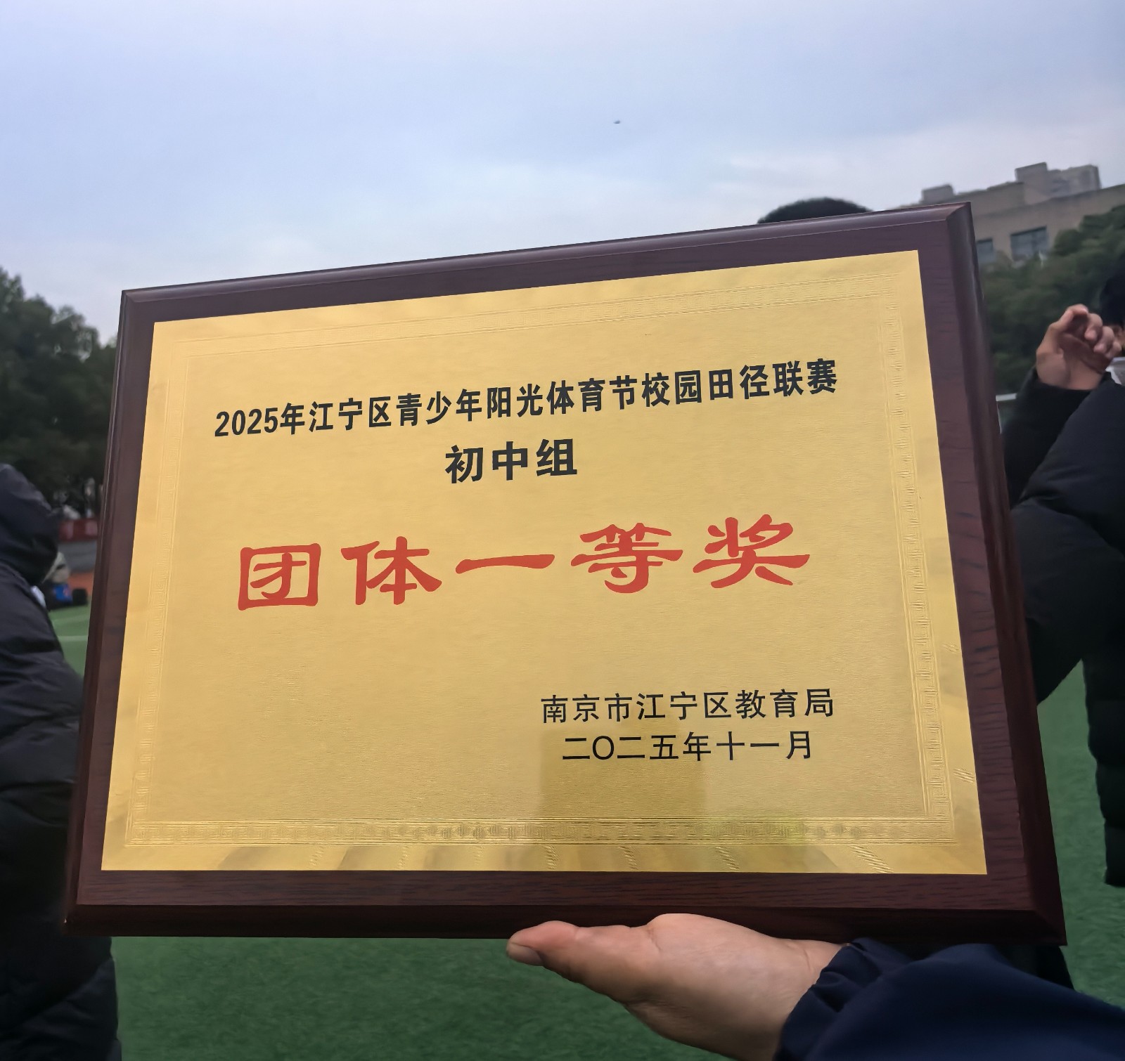我校初中部田径队在11月22-23日的江宁区青少年阳光体育节校园田径联赛获团体一等奖第一名,其中我校男子、女子异程接力比赛以双双打破区记录的成绩获得第一名,同时我校将代表江宁区参加南京市田径比赛,祝贺获奖同学、祝贺初中部。感谢体育组柴同发,李贝,汪斌三位老师。