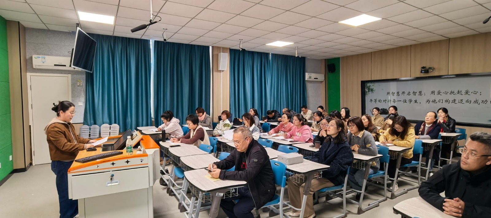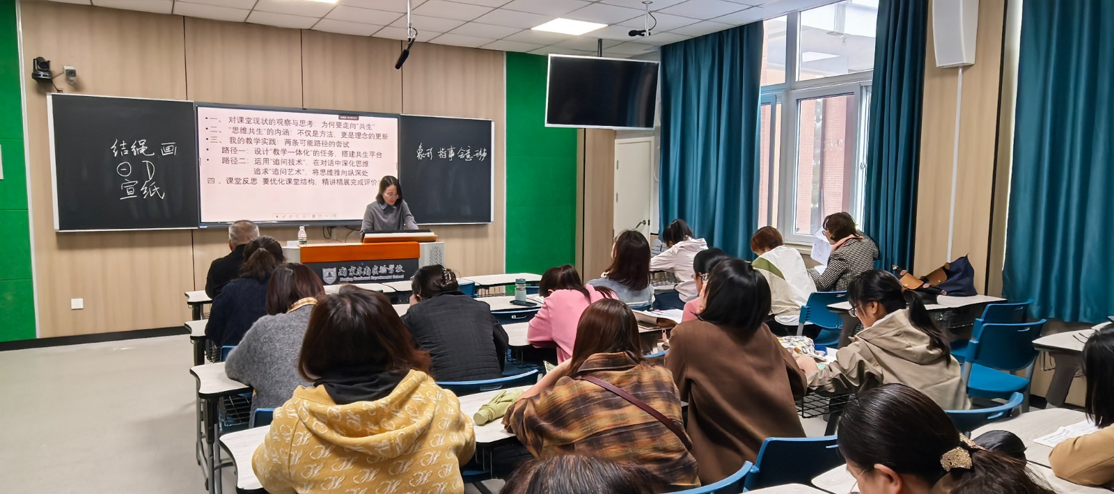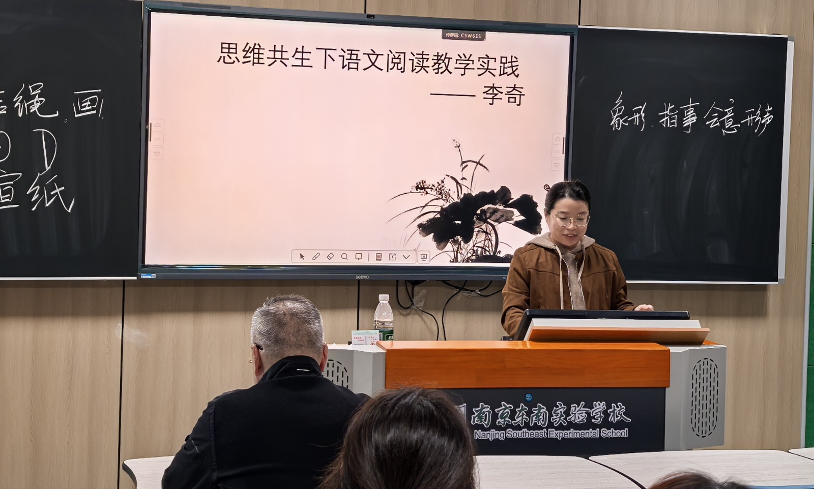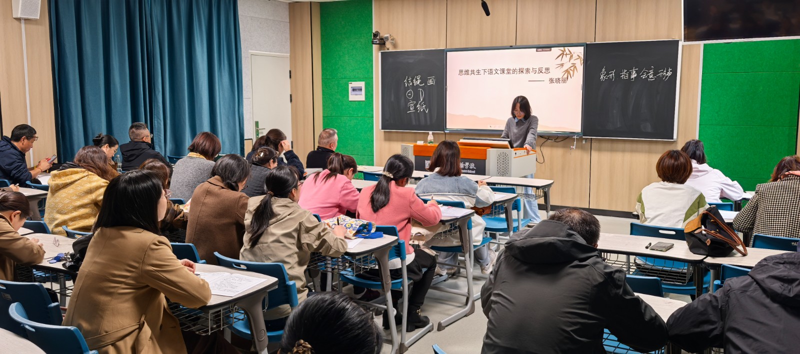 11月6日下午两点半,一场聚焦于初中语文教学革新的讲座在学校A4-101教室准时拉开帷幕。此次讲座由校第五期骨干班的李奇老师和张晓丽老师担任主讲,初中语文组的全体老师齐聚一堂,共同探索“思维・共生”课堂研究的深邃内涵。在教育理念不断更迭的当下,如何构建高效且富有活力的课堂成为教育工作者们关注的焦点,而这场讲座恰似一盏明灯,为初中语文教学照亮新的方向。