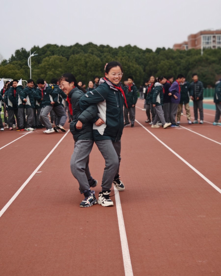 看!跳长绳比赛中,长绳如银龙翻飞,摇绳的同学稳稳把控节奏,参赛的同学们像灵活的小鹿,瞅准时机鱼贯而入、轻盈跃出,衔接得行云流水,默契值直接拉满。夹球跑项目更是趣味十足!搭档们肩并肩、手挽手,用身体稳稳夹住球,喊着统一的节拍稳步向前,哪怕球偶尔滑落,也立刻默契配合重新调整,绝不气馁。现场的加油声、欢呼声此起彼伏,这场趣味运动会,不仅玩得尽兴,更让大家读懂了团结的力量!