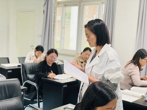 课后,戚玲芳主任、陈晓惠老师、杨孟金老师进行了精彩点评。兰老师在写作环节,根据要点,指导学生进行列提纲,确保要点不漏,句型准确,然后让一个学生在黑板上写, 一个学生评价。学生主要从准确性上进行评价,然后老师给出一张评价表,从写作的关联性,准确性,创新性,连贯性等角度让学生rewrite the article. 教师点评与学生互评想结合,学生的写作习惯,思维习惯,书写习惯得到有机的融合。这是一节高质量的示范课,值得老师们学习与借鉴。