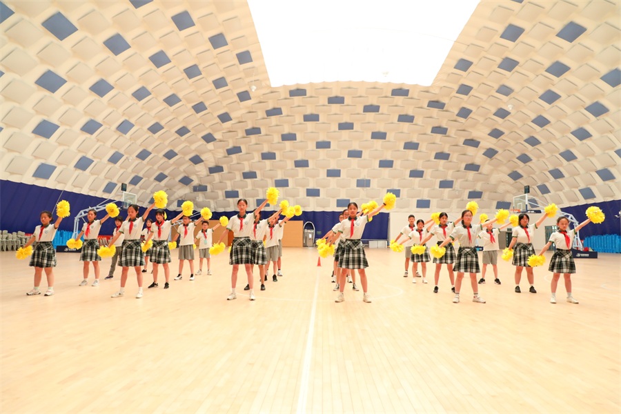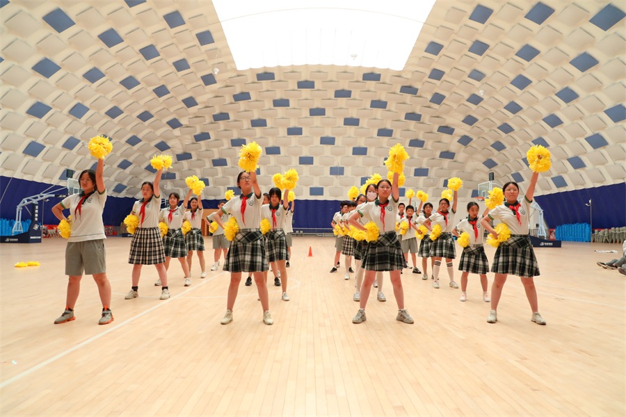 为丰富学生的校园文体生活,展示学生青春风采,增强班级荣誉感和凝聚力,进一步推进学校阳光体育的蓬勃发展。5月底,南师附中江宁分校初一年级 13岁金色童年系列活动——“健康童年 ,魅力啦啦操”大赛在校气膜体育馆场隆重举行。