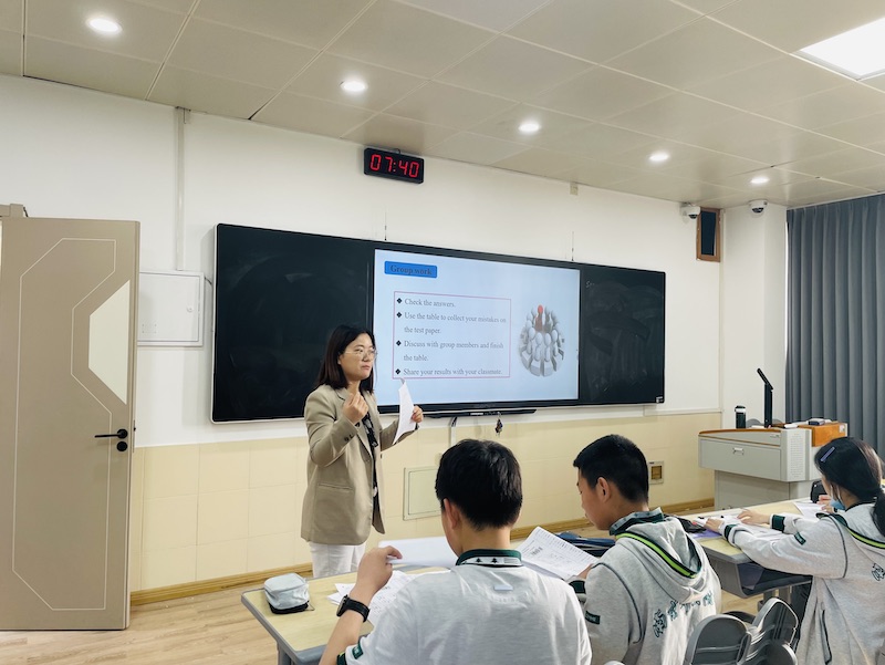 4月17日周一上午7:40,初中英语全体老师在西办三楼未来教室举行初一、初二年级期中试卷讲评赛课活动,胡叶洲老师,殷康梅老师分别进行了教学展示。两位老师均针对学生在试卷上出现的共性问题进行了细致地分析,并帮助学生在解决难题的基础上掌握方式方法。两节课都体现以学生为主体,讲练结合,踏实务实的精神;注重英语学科素养所要求的对学生语言能力,文化意识,思维品质和学习能力等方面的培养和训练。学练结合,让学生在学科学习中充分反思,在反思中寻找进步的信心。