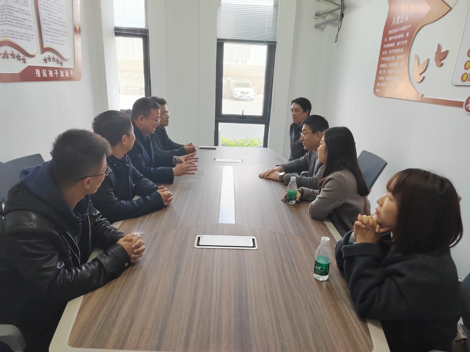12月9日,我校初中党支部委员、党小组长和部分行政人员来到中铁建南京江北地下空间建设开发有限公司,开展党建交流活动。